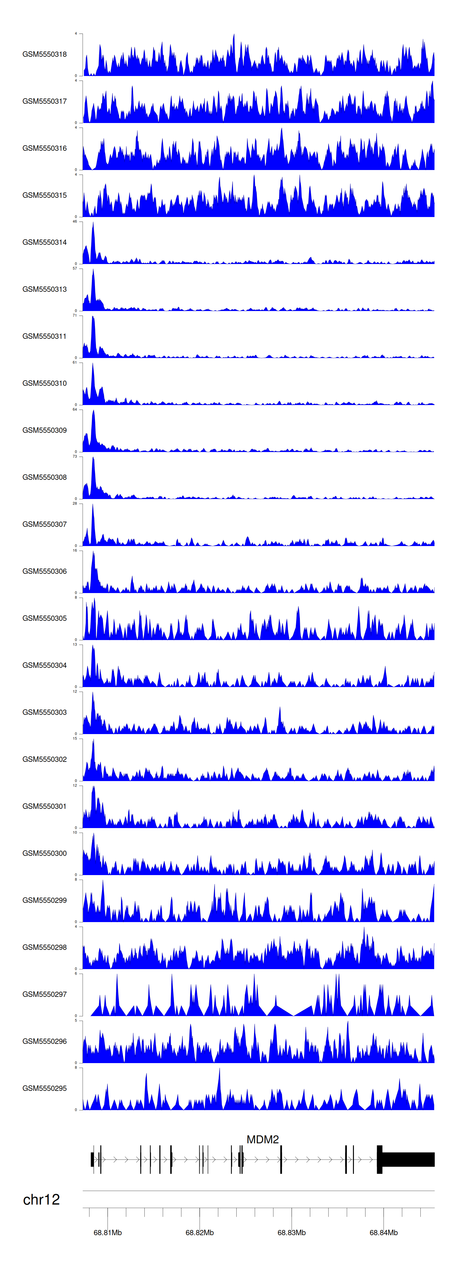 Summary This gene encodes a nuclear-localized E3 ubiquitin ligase. The encoded protein can promote tumor formation by targeting tumor suppressor proteins, such as p53, for proteasomal degradation. This gene is itself transcriptionally-regulated by p53. Overexpression or amplification of this locus is detected in a variety of different cancers. There is a pseudogene for this gene on chromosome 2. Alternative splicing results in a multitude of transcript variants, many of which may be expressed only in tumor cells. [provided by RefSeq, Jun 2013]