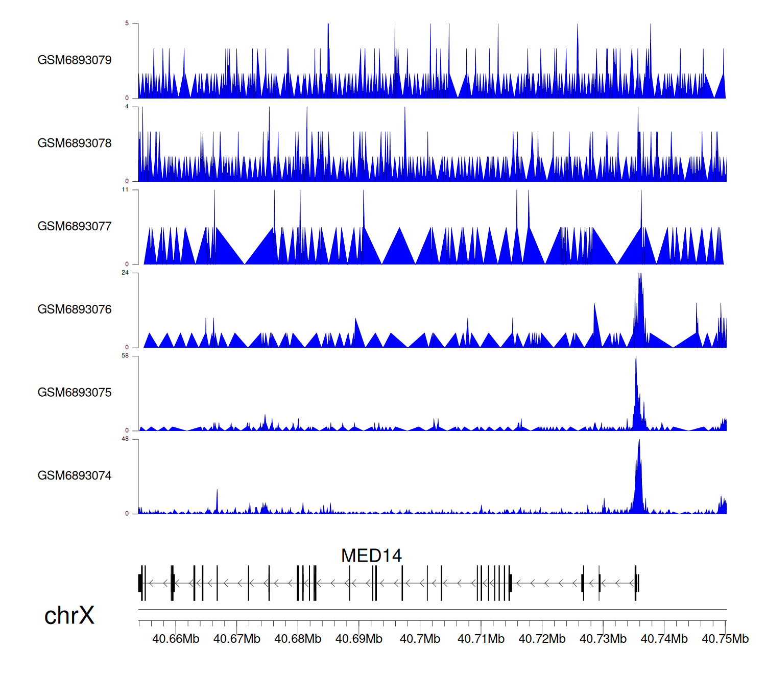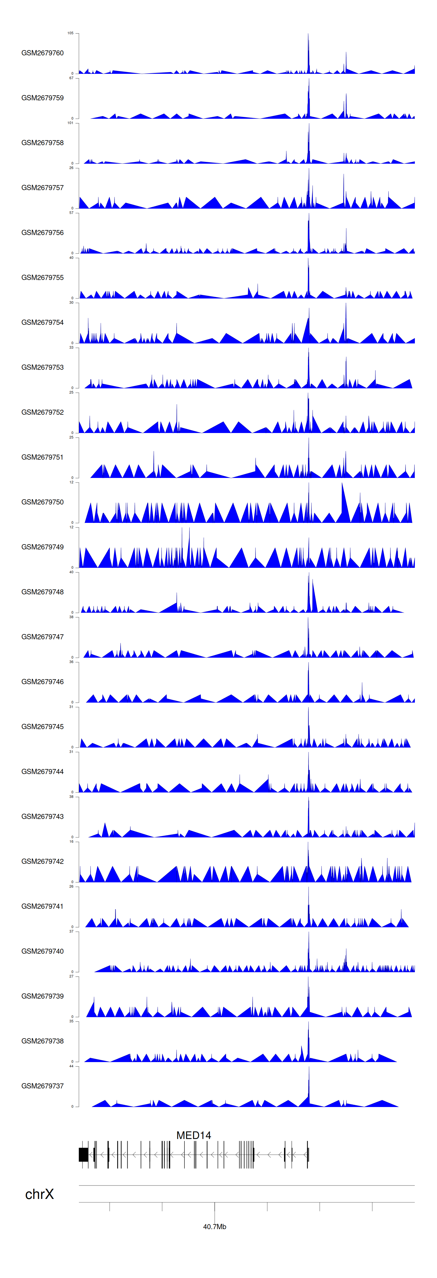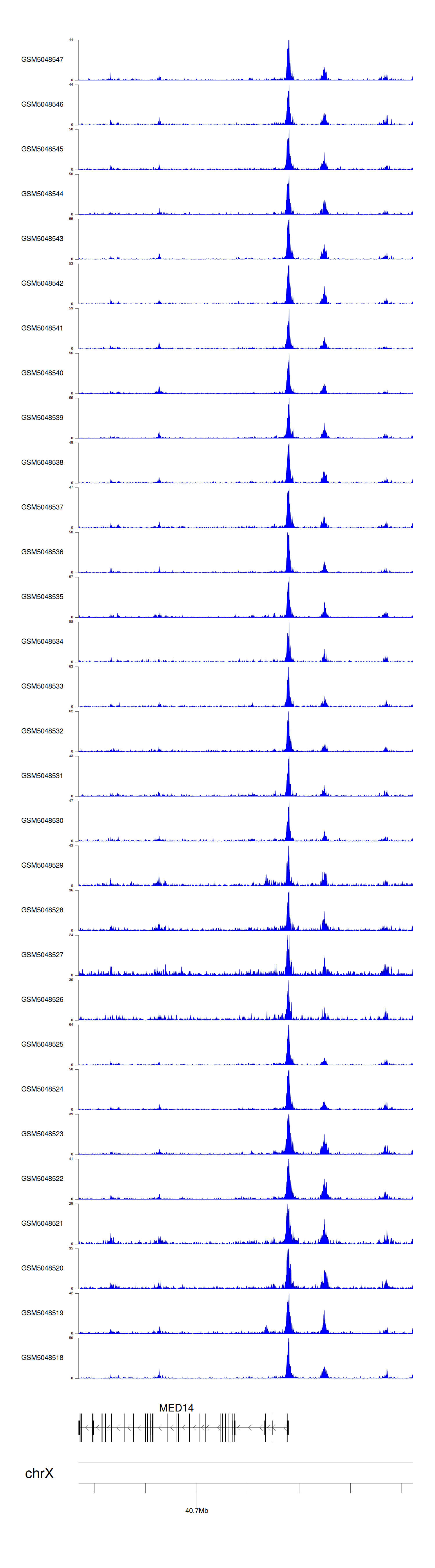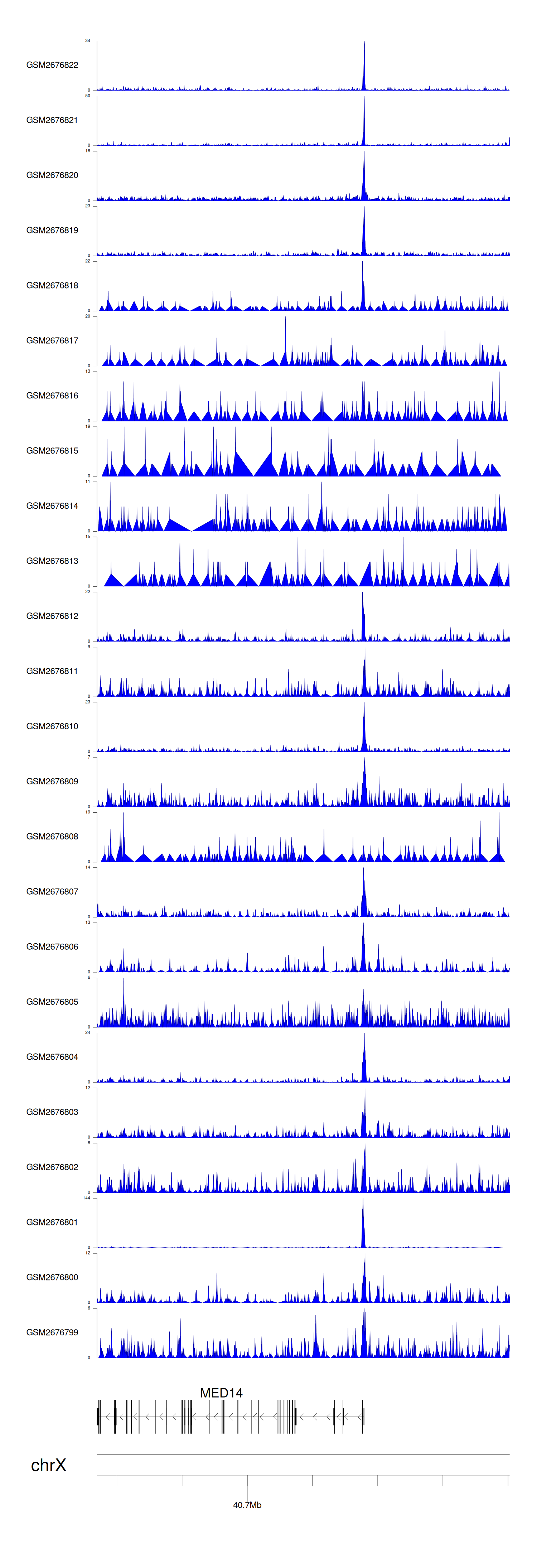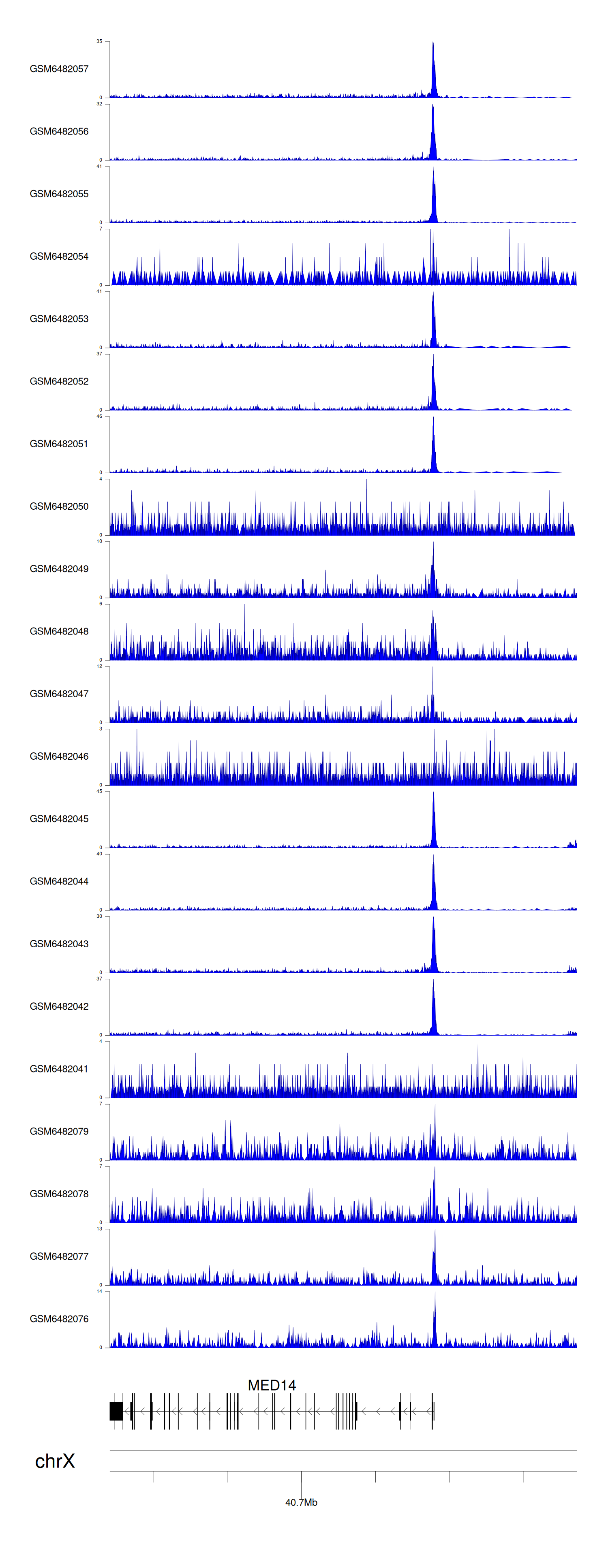 > Dataset: GSE165703 - MED14 peak across samples