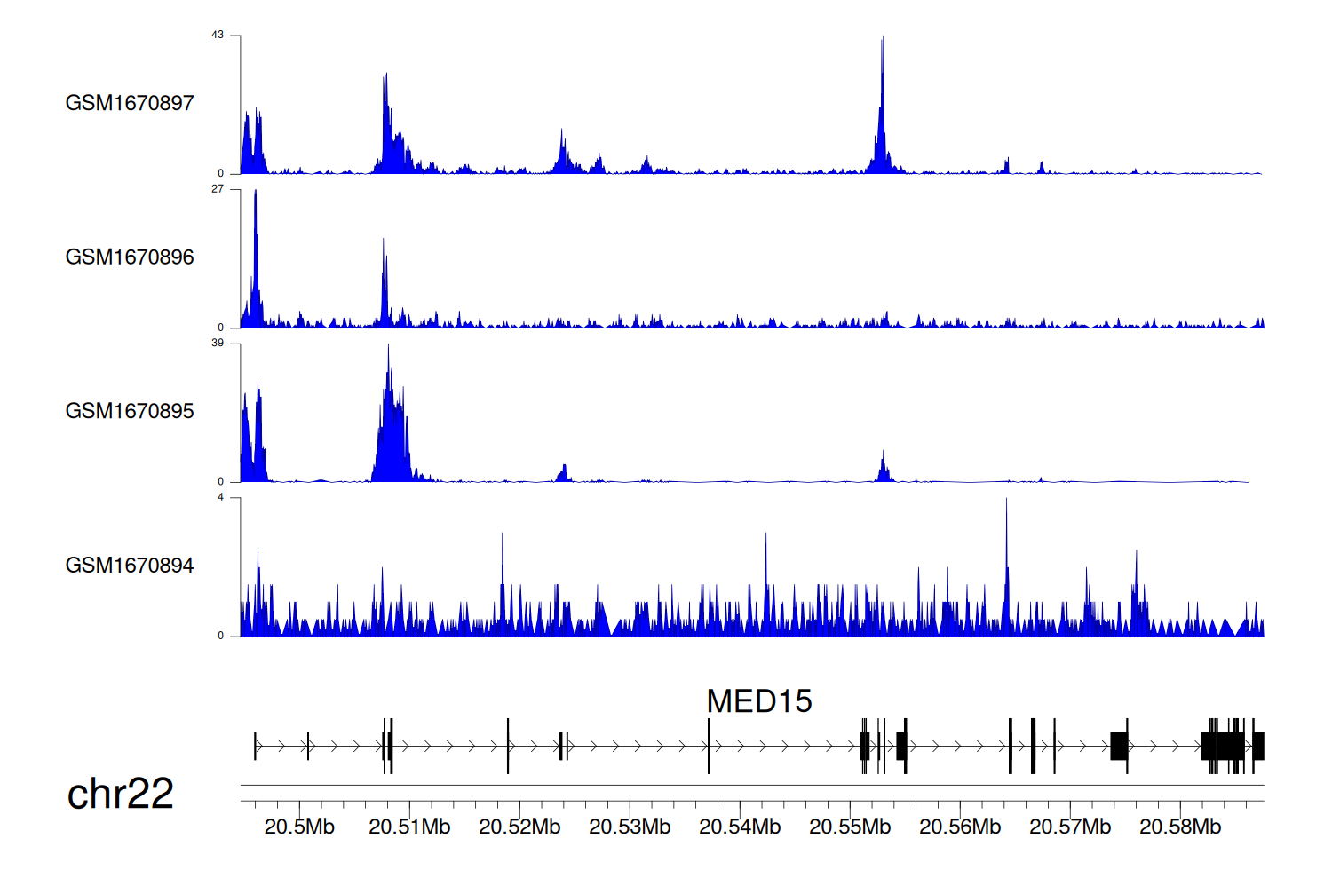 Summary The protein encoded by this gene is a subunit of the multiprotein complexes PC2 and ARC/DRIP and may function as a transcriptional coactivator in RNA polymerase II transcription. This gene contains stretches of trinucleotide repeats and is located in the chromosome 22 region which is deleted in DiGeorge syndrome. Alternative splicing results in multiple transcript variants. [provided by RefSeq, Jun 2014]