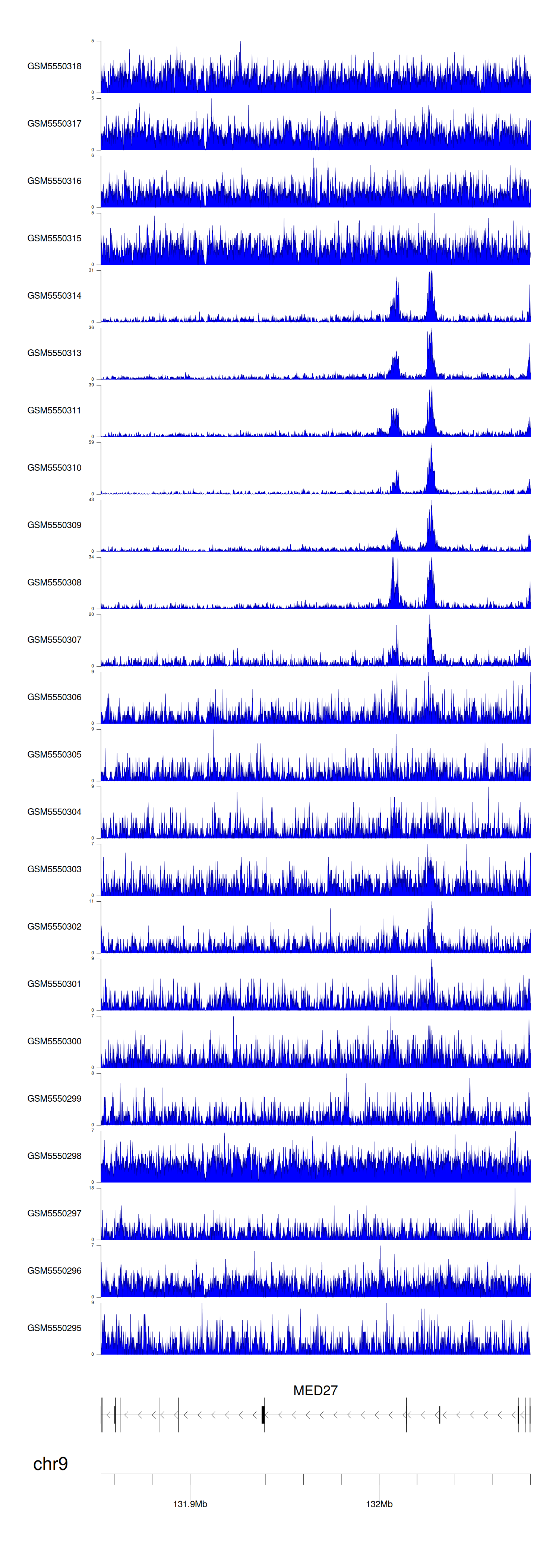 > Dataset: GSE143026 - MED27 peak across samples