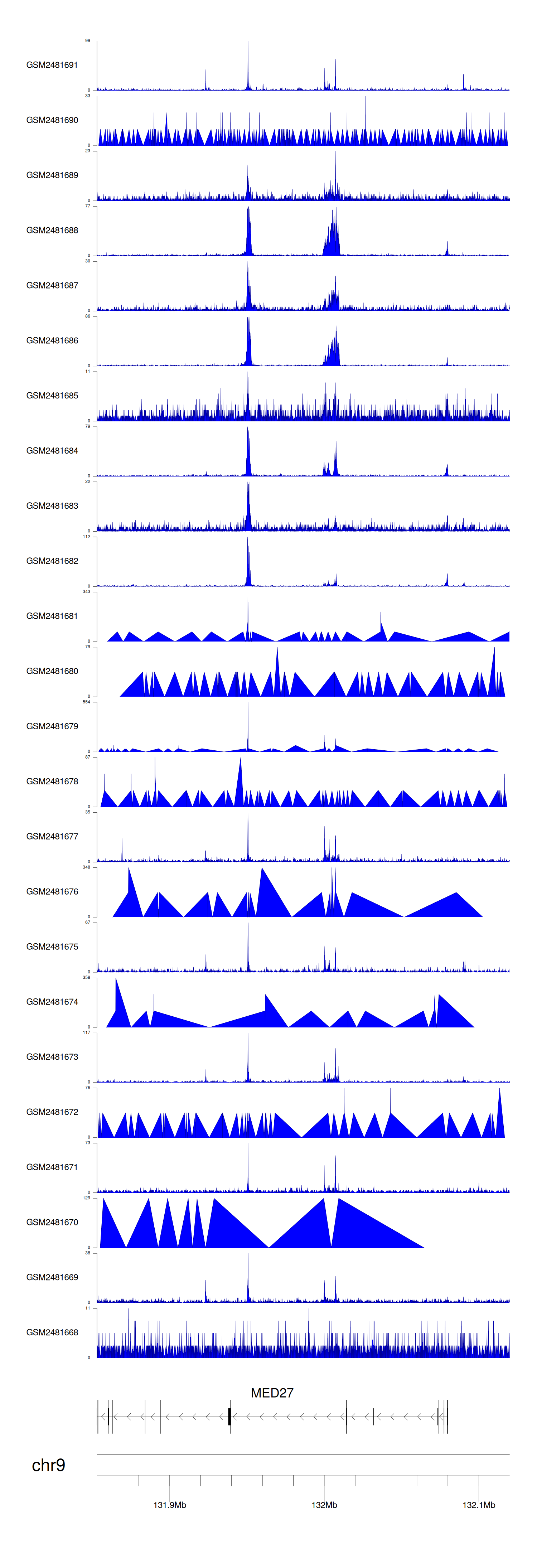 > Dataset: GSE94732 - MED27 peak across samples
