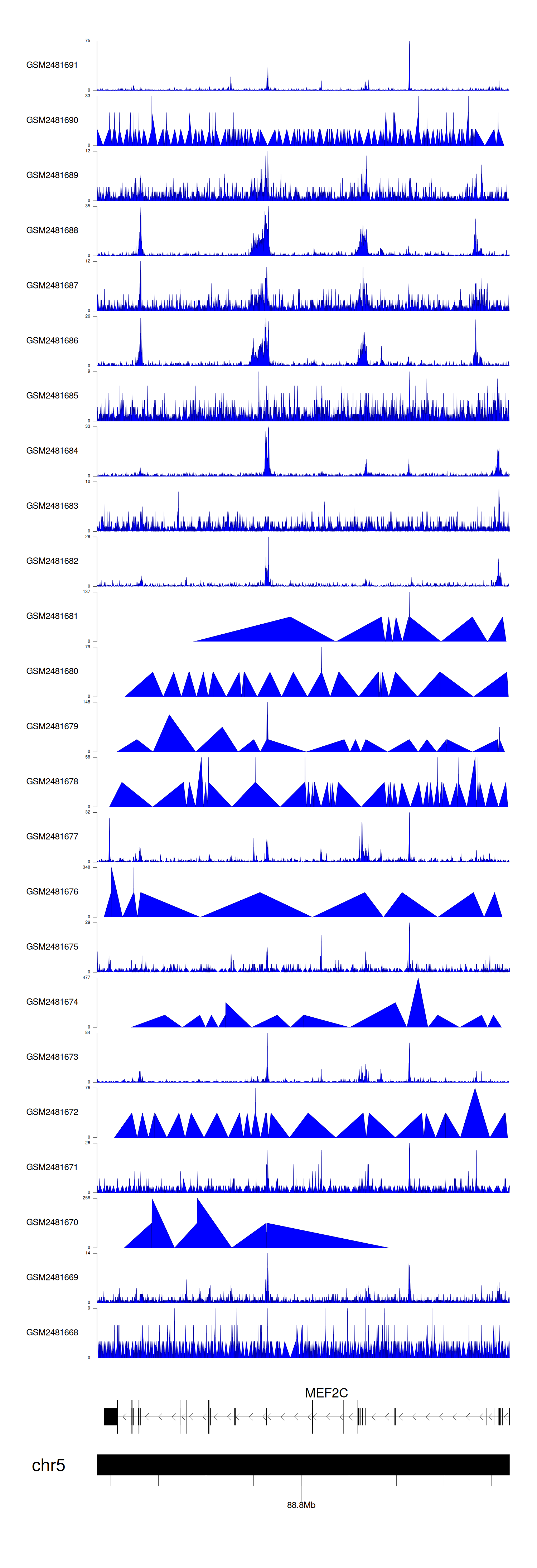 This locus encodes a member of the MADS box transcription enhancer factor 2 (MEF2) family of proteins, which play a role in myogenesis. The encoded protein, MEF2 polypeptide C, has both trans-activating and DNA binding activities. This protein may play a role in maintaining the differentiated state of muscle cells. Mutations and deletions at this locus have been associated with severe cognitive disability, stereotypic movements, epilepsy, and cerebral malformation. Alternatively spliced transcript variants have been described. [provided by RefSeq, Jul 2010] |