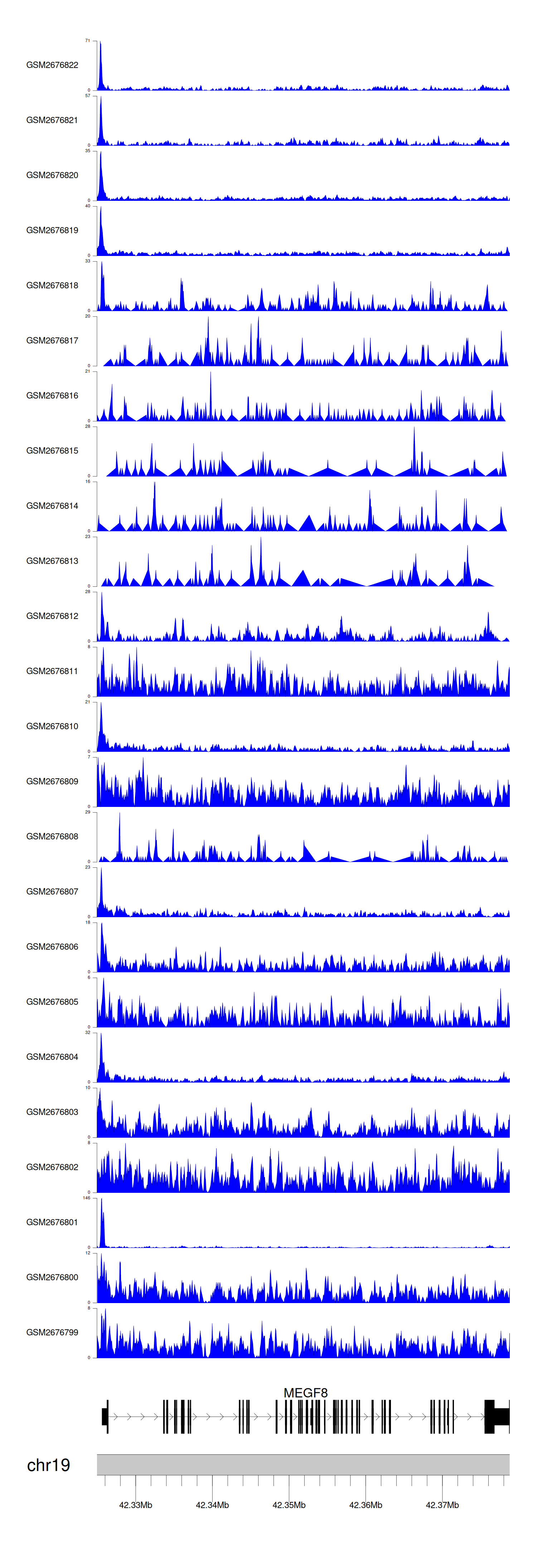 > Dataset: GSE100376 - MEGF8 peak across samples