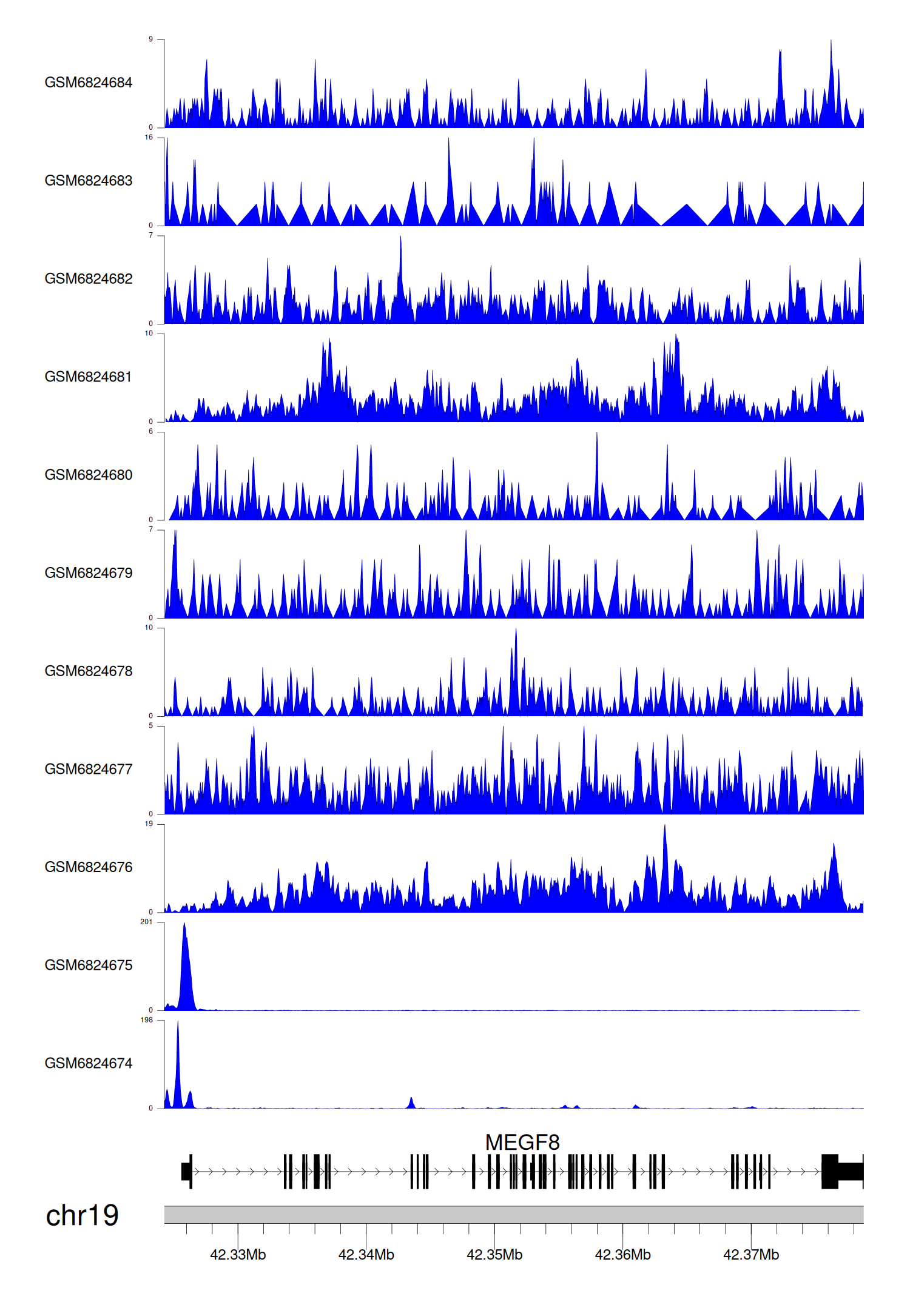> Dataset: GSE144329 - MEGF8 peak across samples
