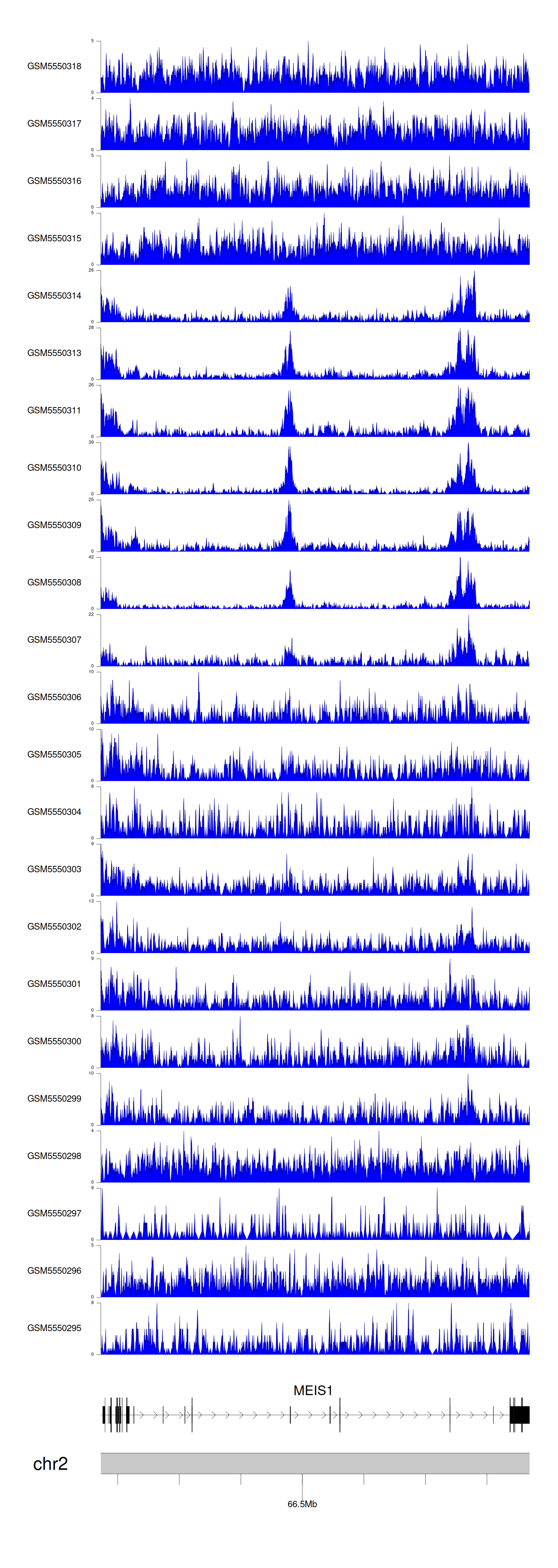 > Dataset: GSE143026 - MEIS1 peak across samples