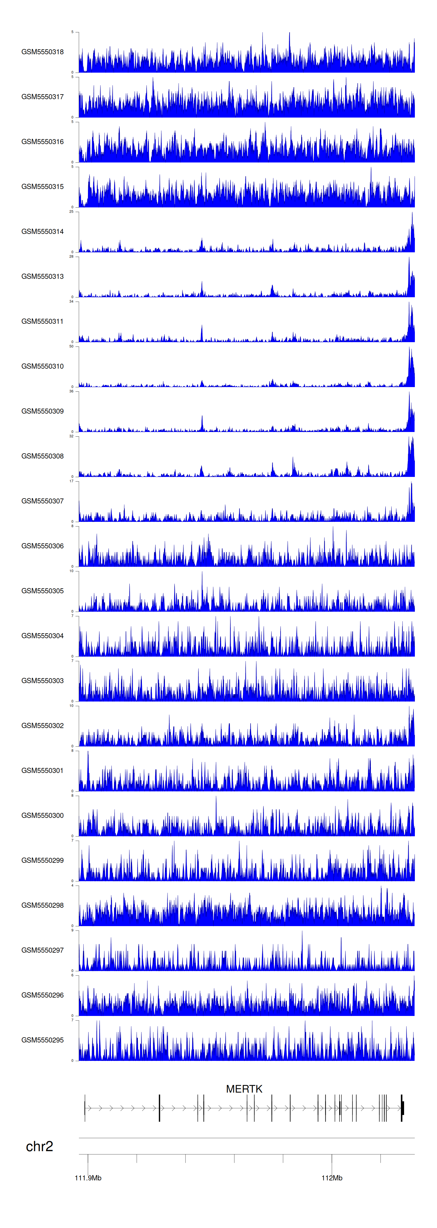 Summary This gene is a member of the MER/AXL/TYRO3 receptor kinase family and encodes a transmembrane protein with two fibronectin type-III domains, two Ig-like C2-type (immunoglobulin-like) domains, and one tyrosine kinase domain. Mutations in this gene have been associated with disruption of the retinal pigment epithelium (RPE) phagocytosis pathway and onset of autosomal recessive retinitis pigmentosa (RP). [provided by RefSeq, Jul 2008]