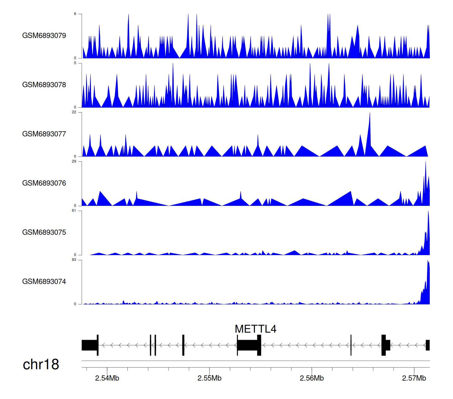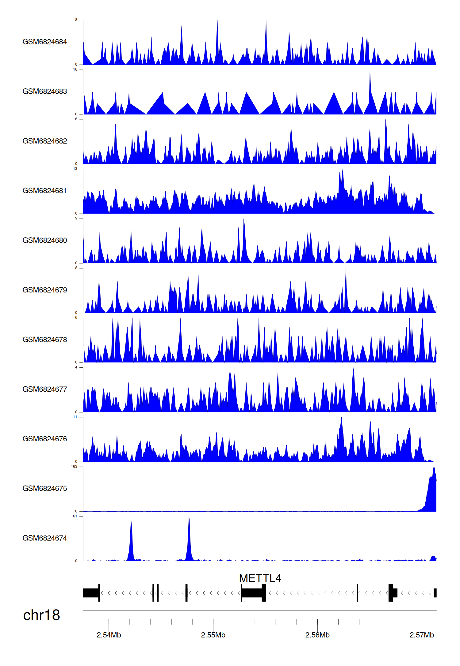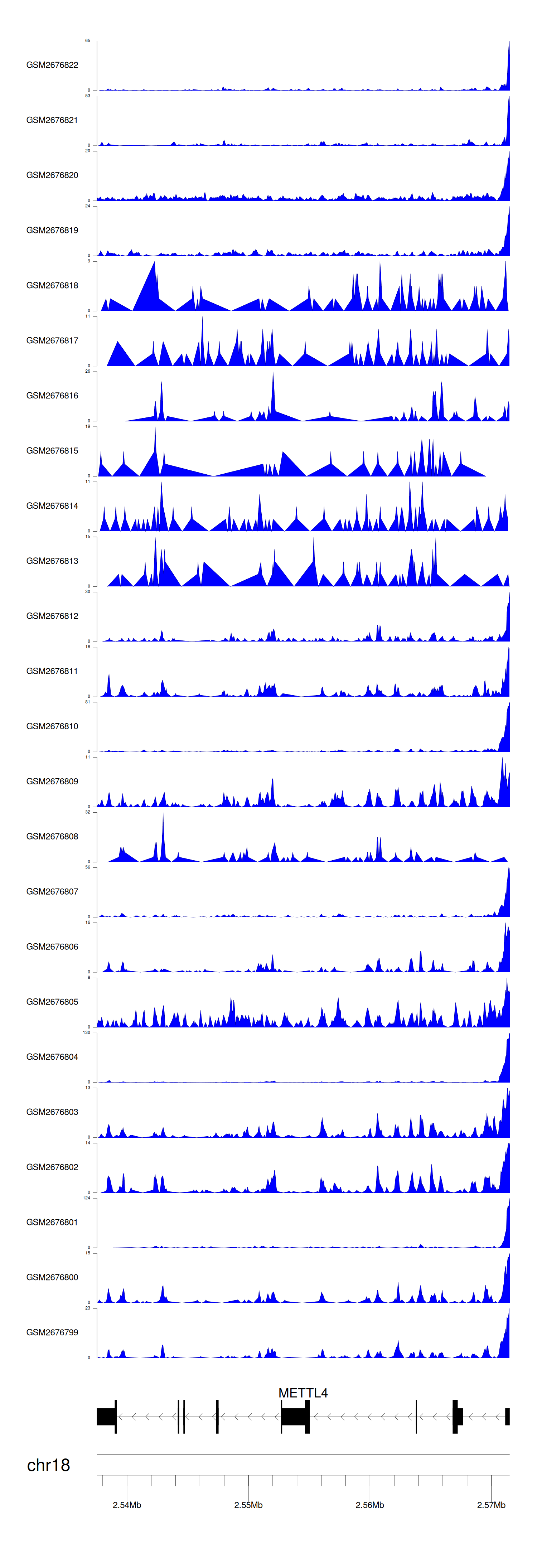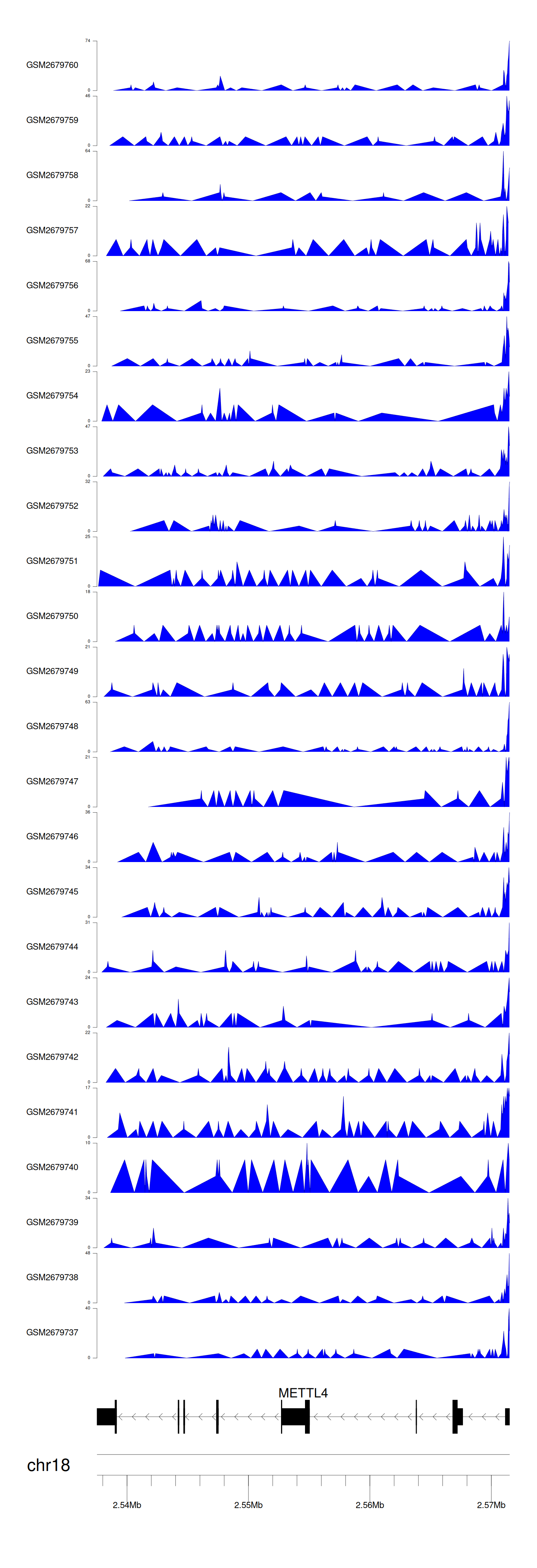 > Dataset: GSE30738 - METTL4 peak across samples