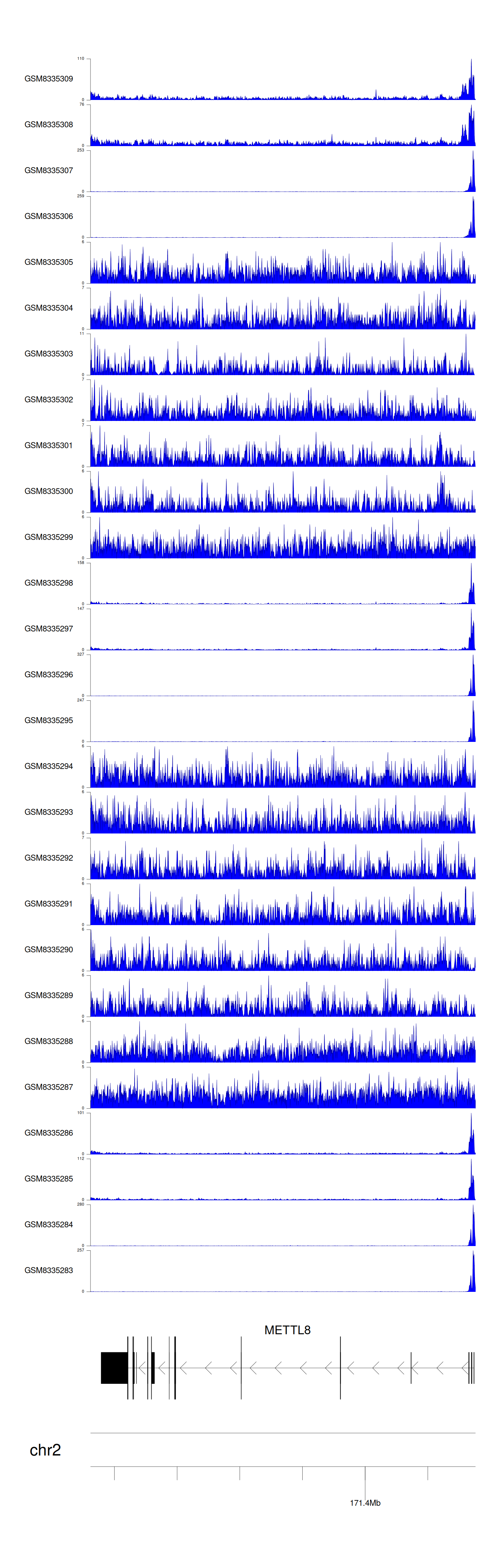 > Dataset: GSE270130 - METTL8 peak across samples