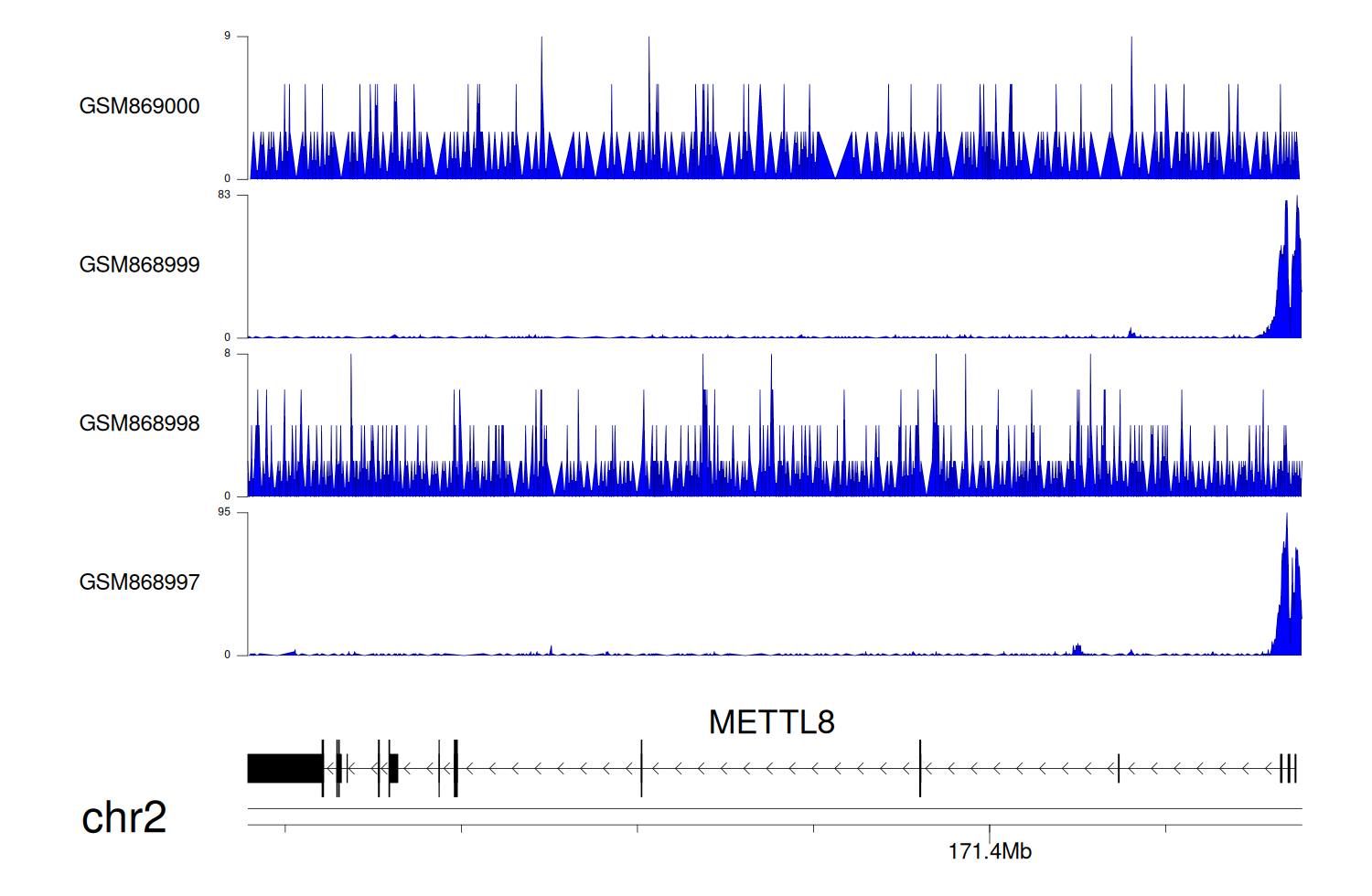 > Dataset: GSE68402 - METTL8 peak across samples