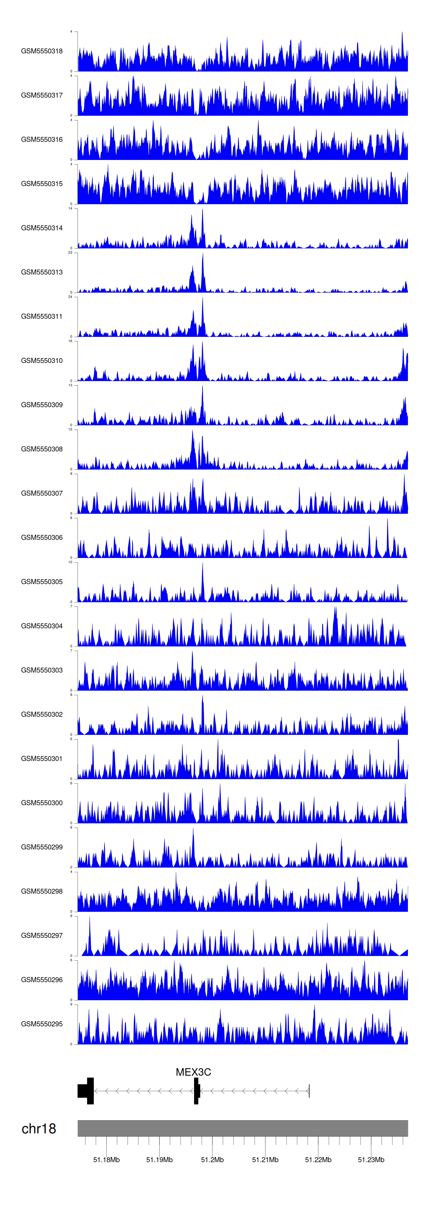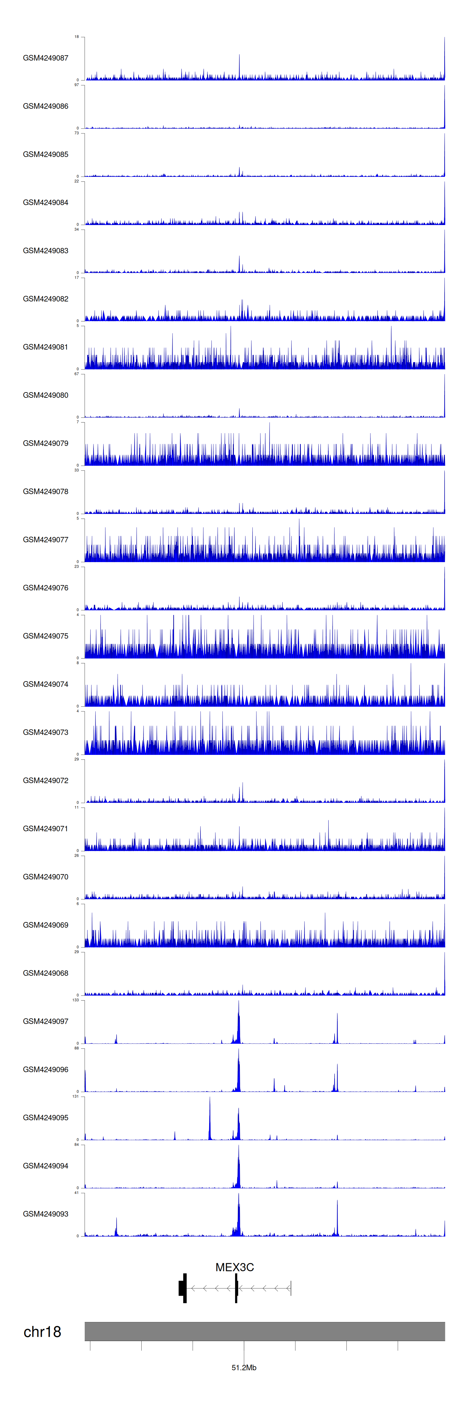 > Dataset: GSE143026 - MEX3C peak across samples