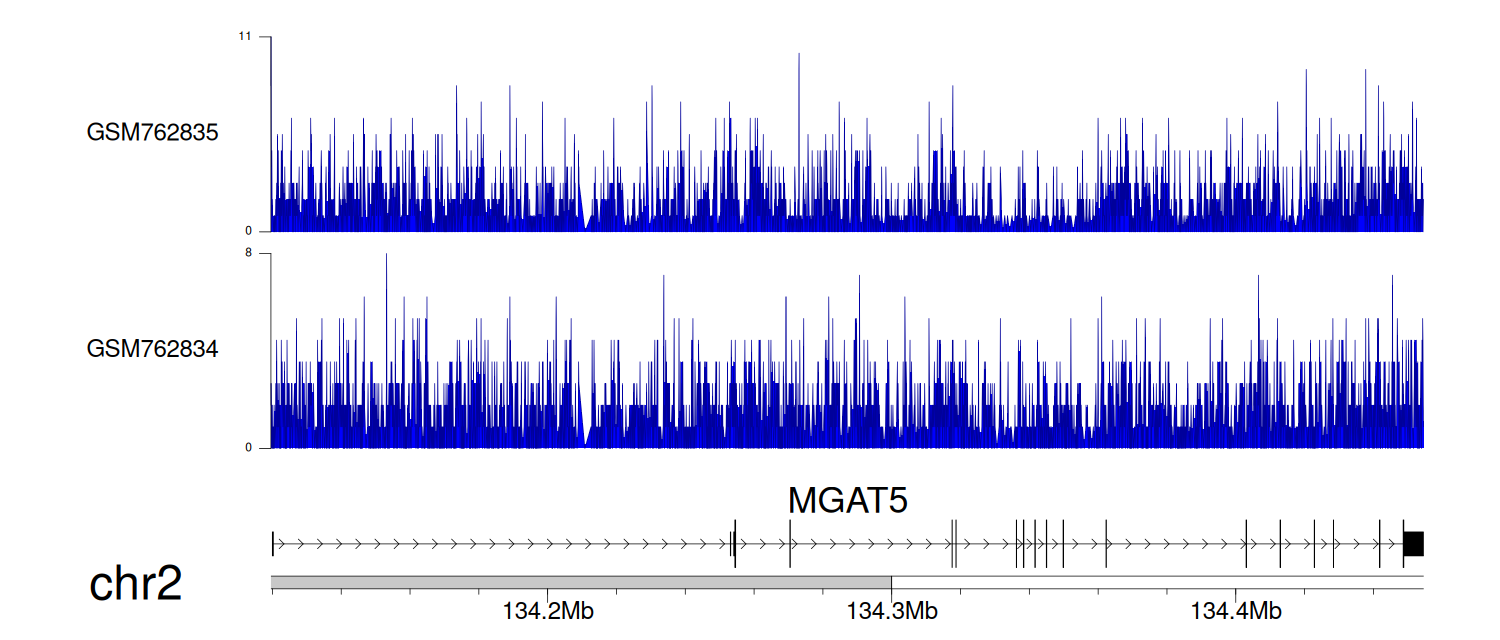 > Dataset: GSE100266 - MGAT5 peak across samples