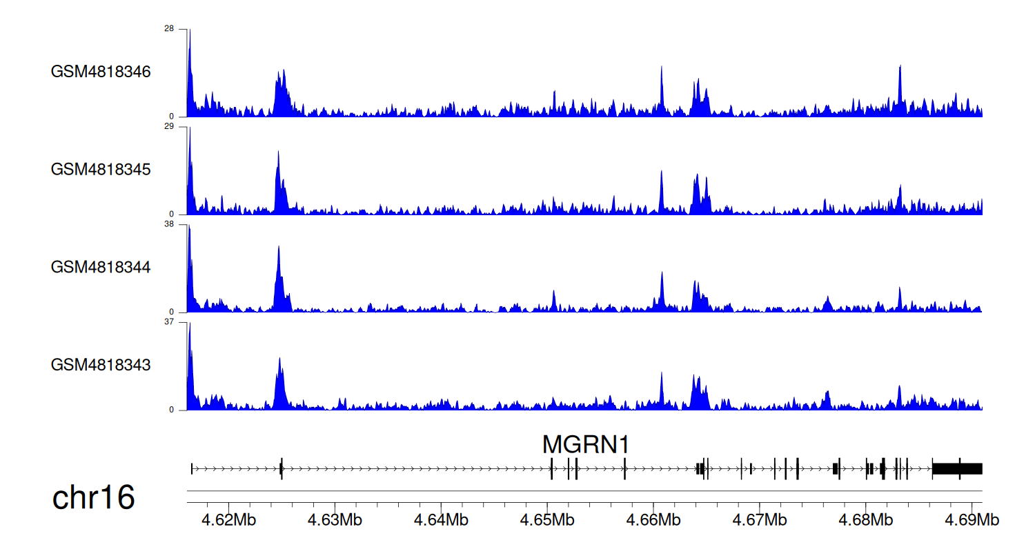 > Dataset: GSE131257 - MGRN1 peak across samples