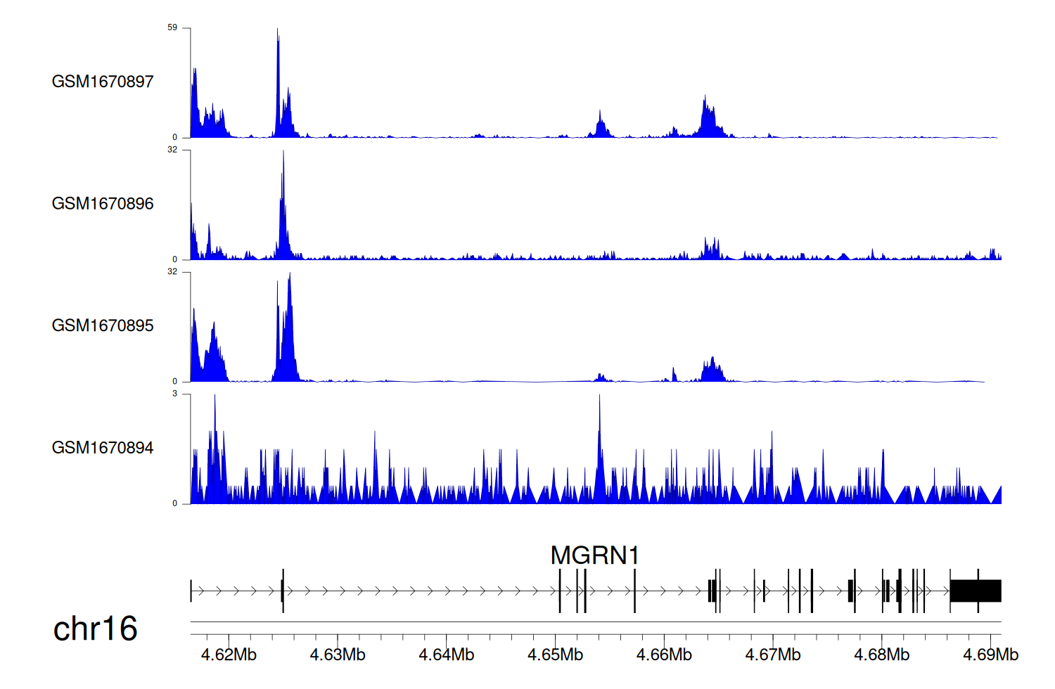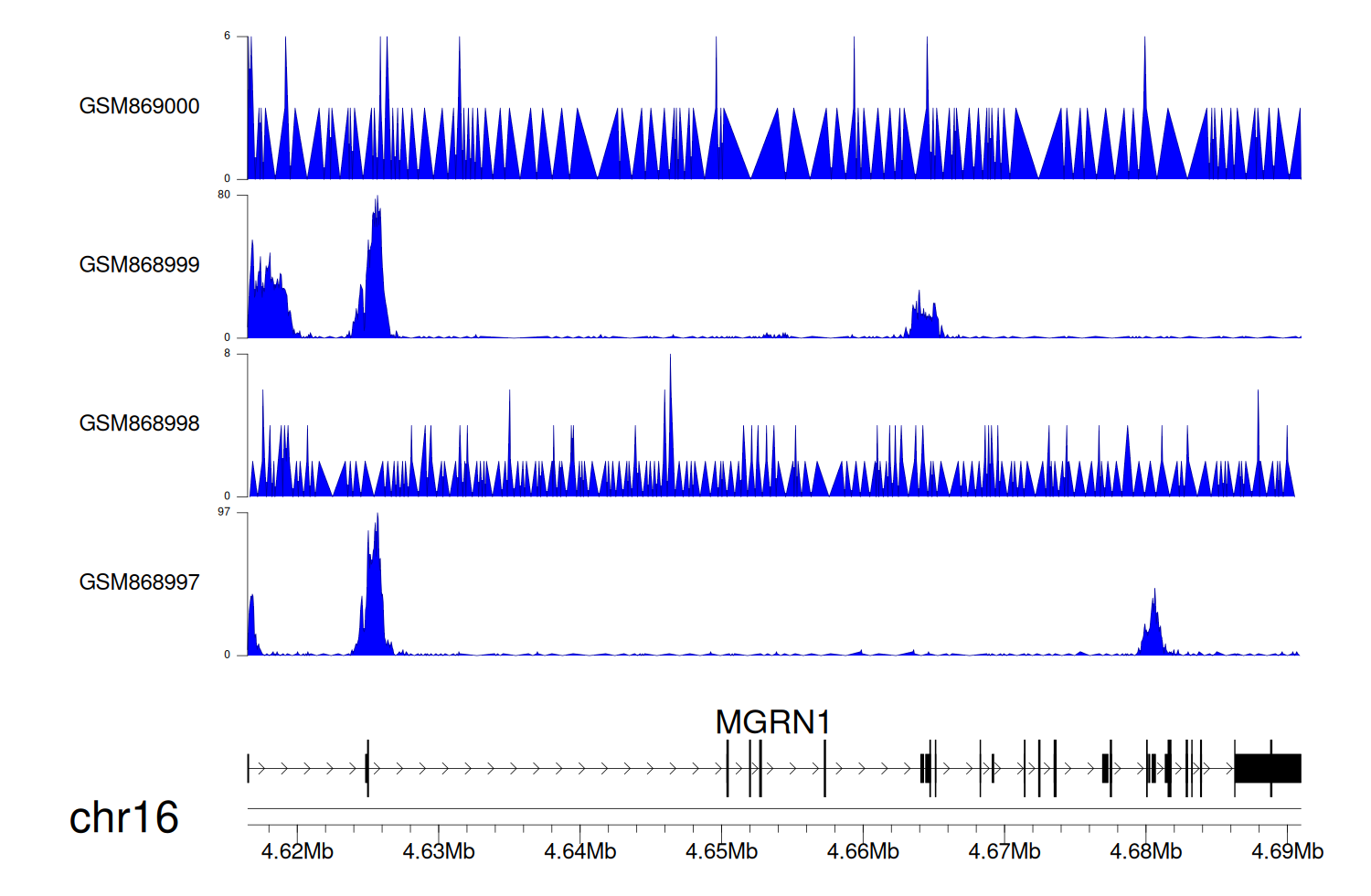 > Dataset: GSE68402 - MGRN1 peak across samples