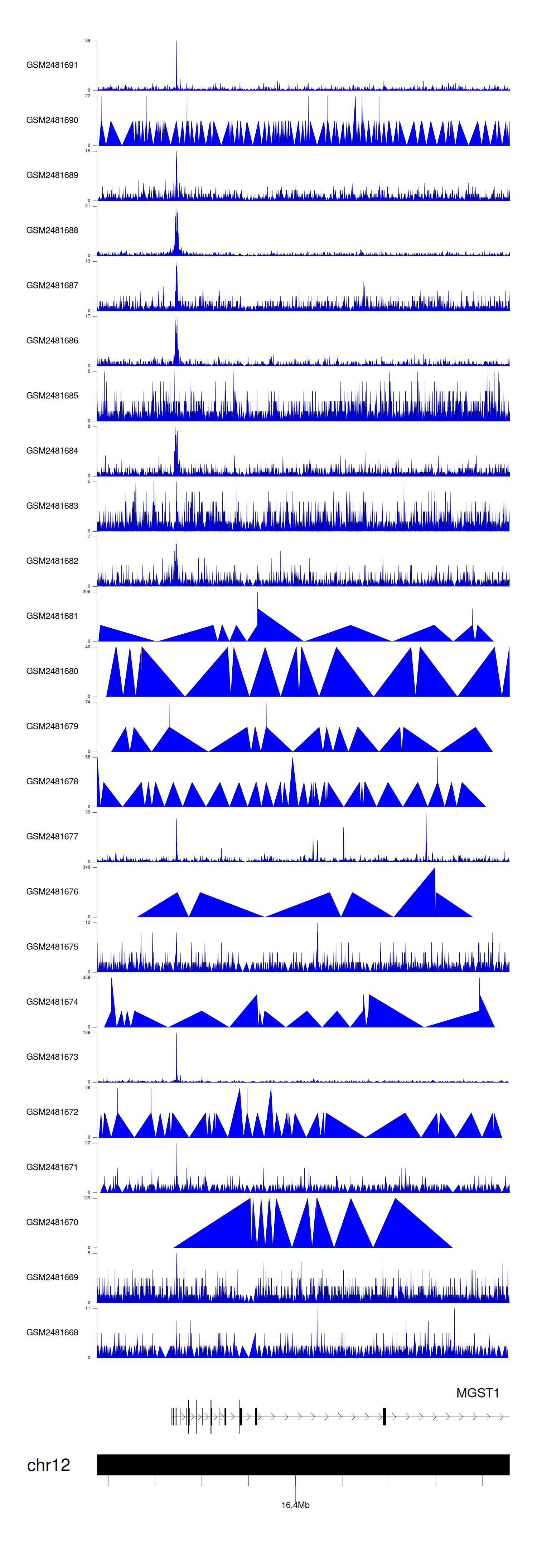 > Dataset: GSE94732 - MGST1 peak across samples