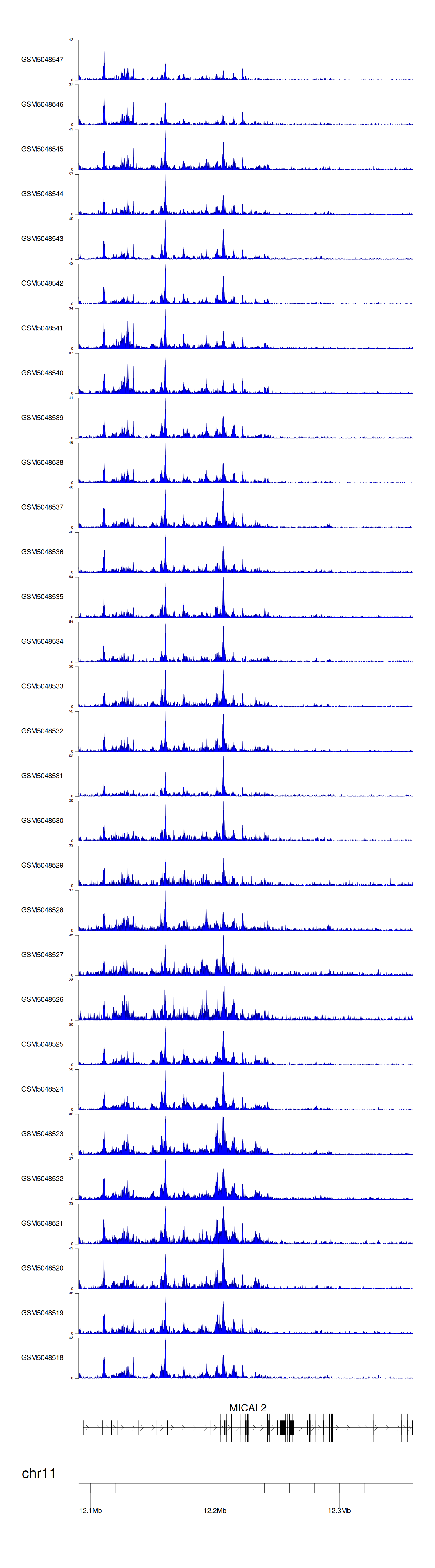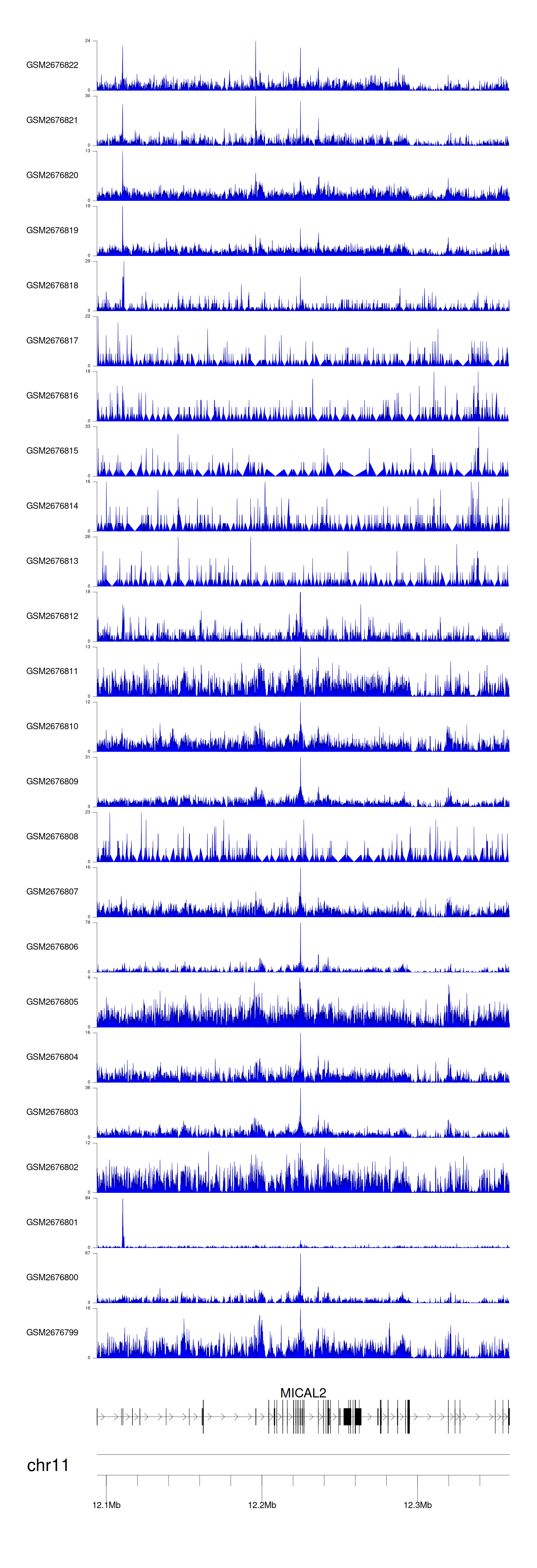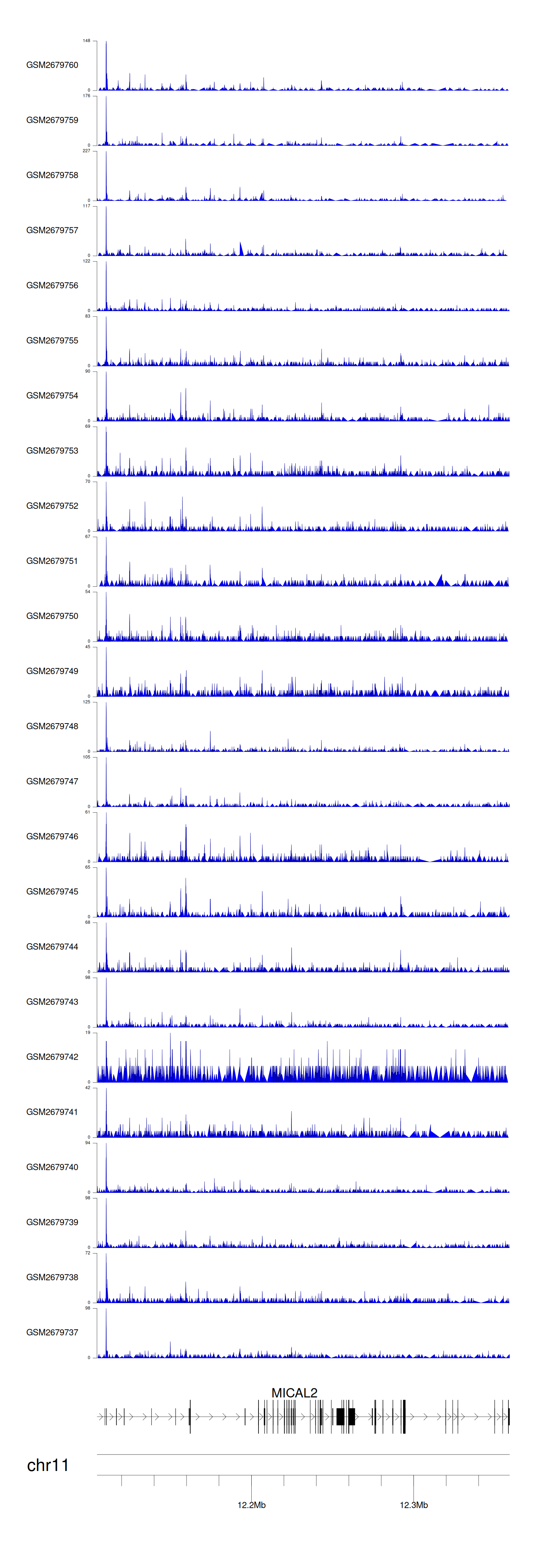 > Dataset: GSE100376 - MICAL2 peak across samples