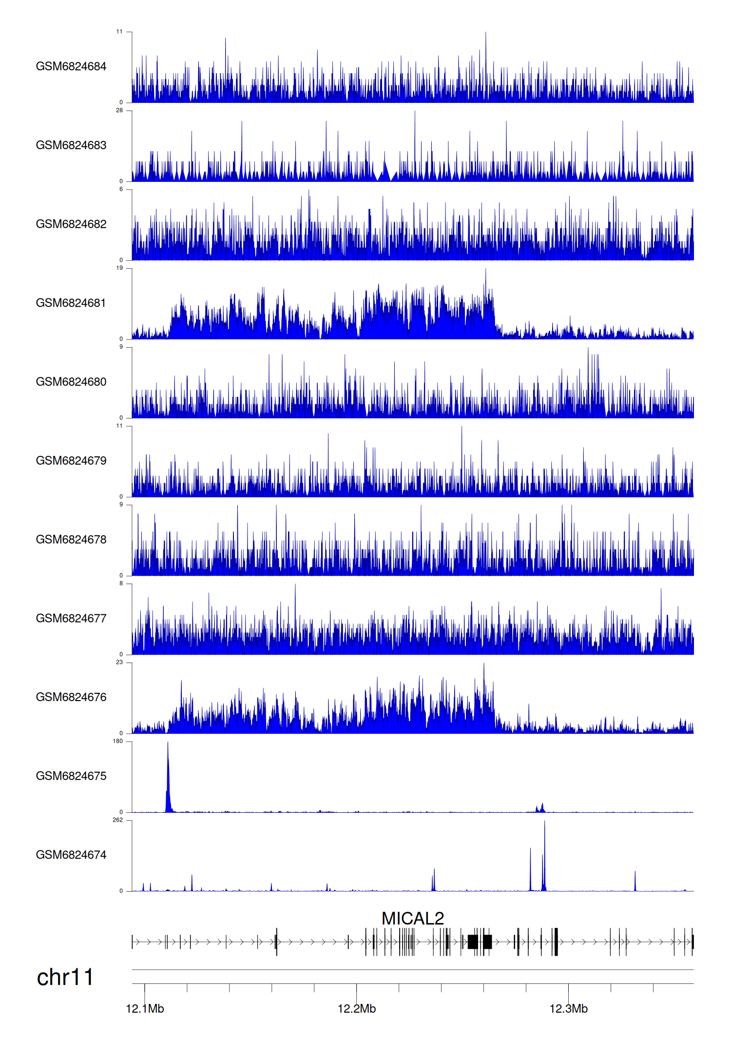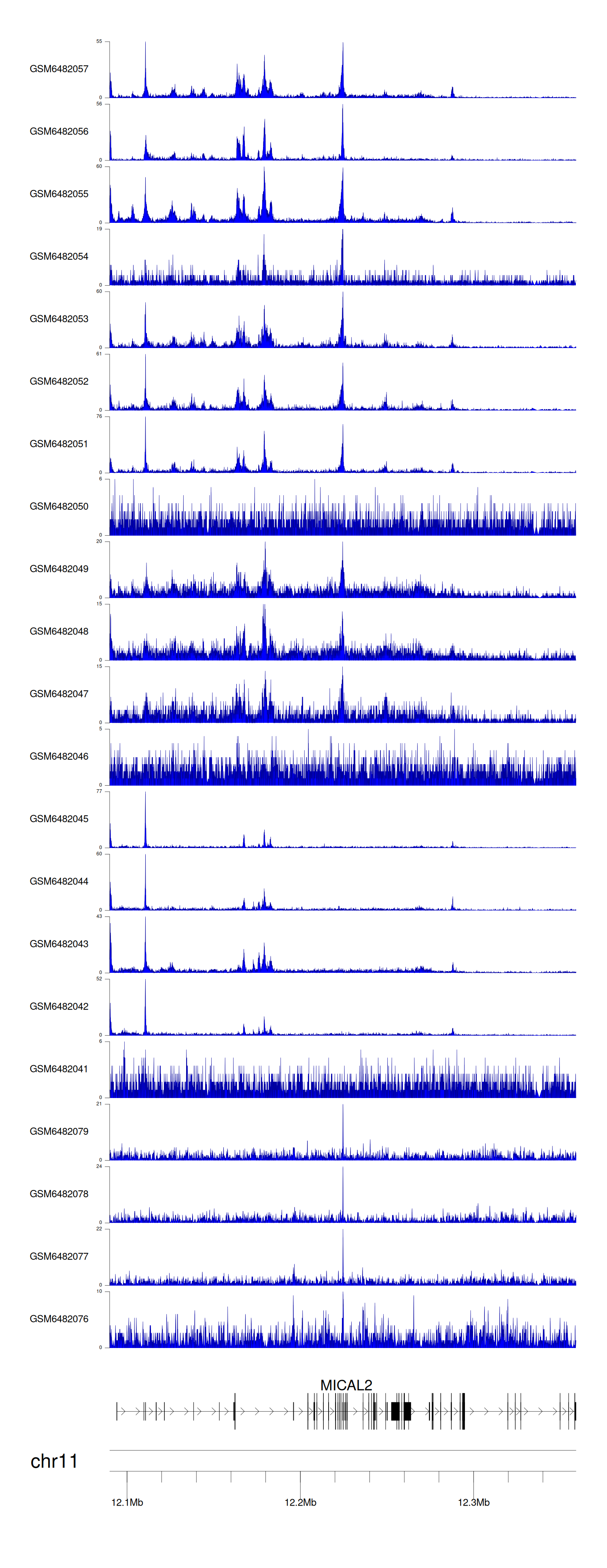 > Dataset: GSE144329 - MICAL2 peak across samples