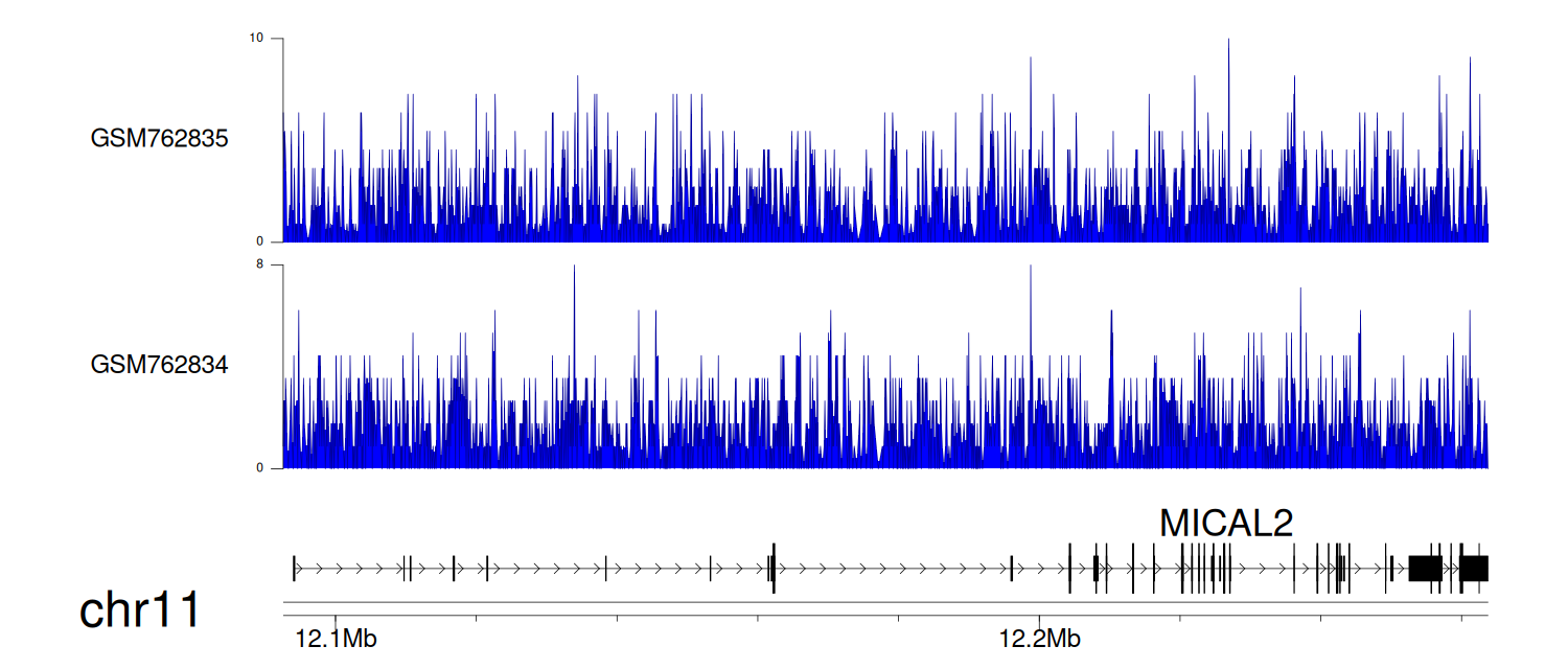 > Dataset: GSE30738 - MICAL2 peak across samples