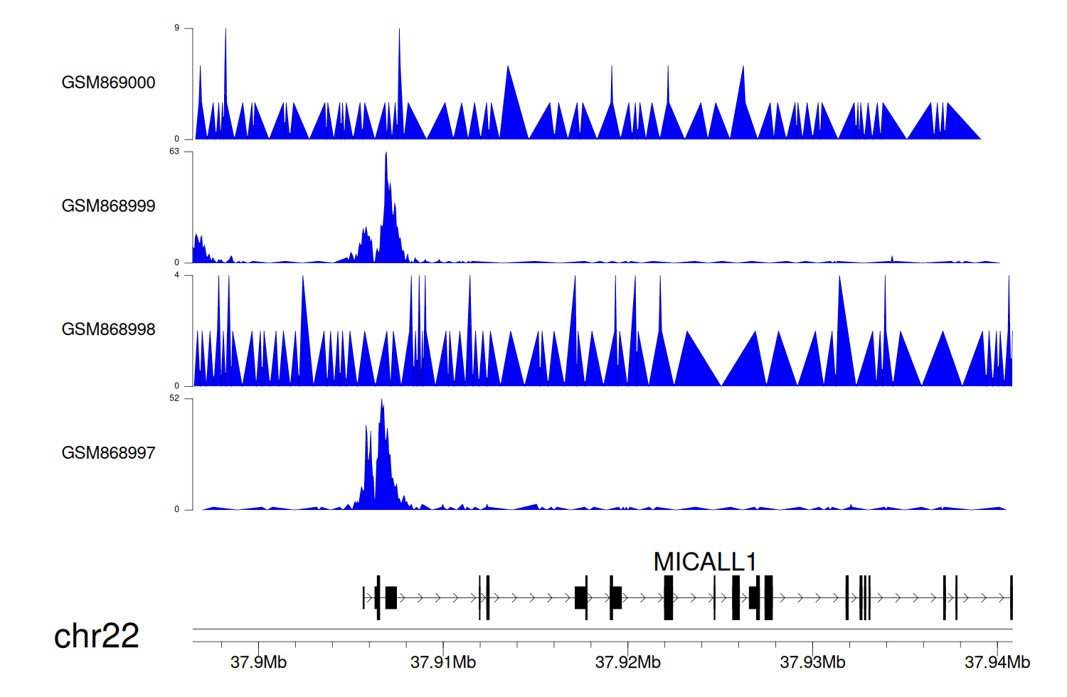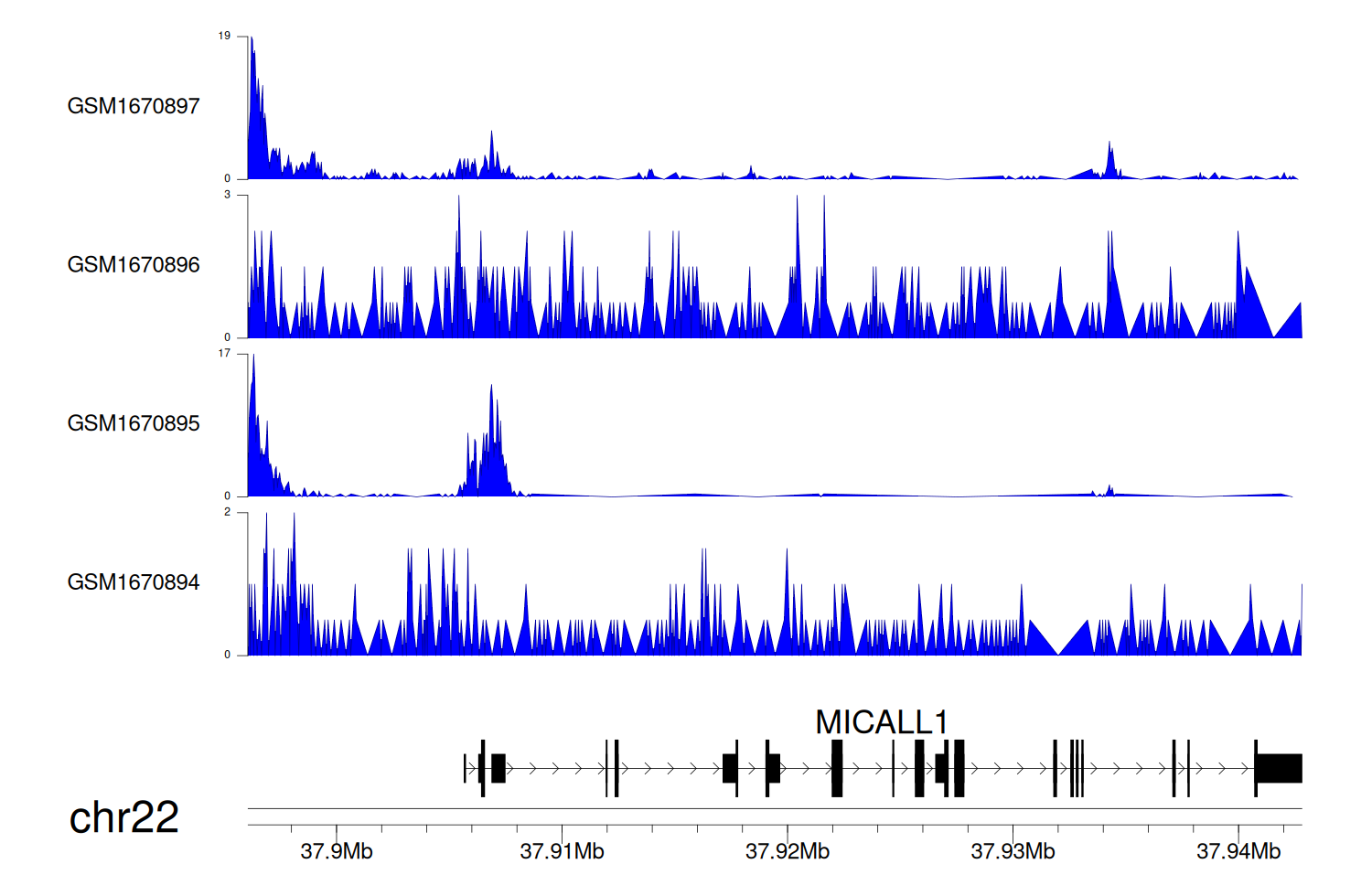 > Dataset: GSE68402 - MICALL1 peak across samples