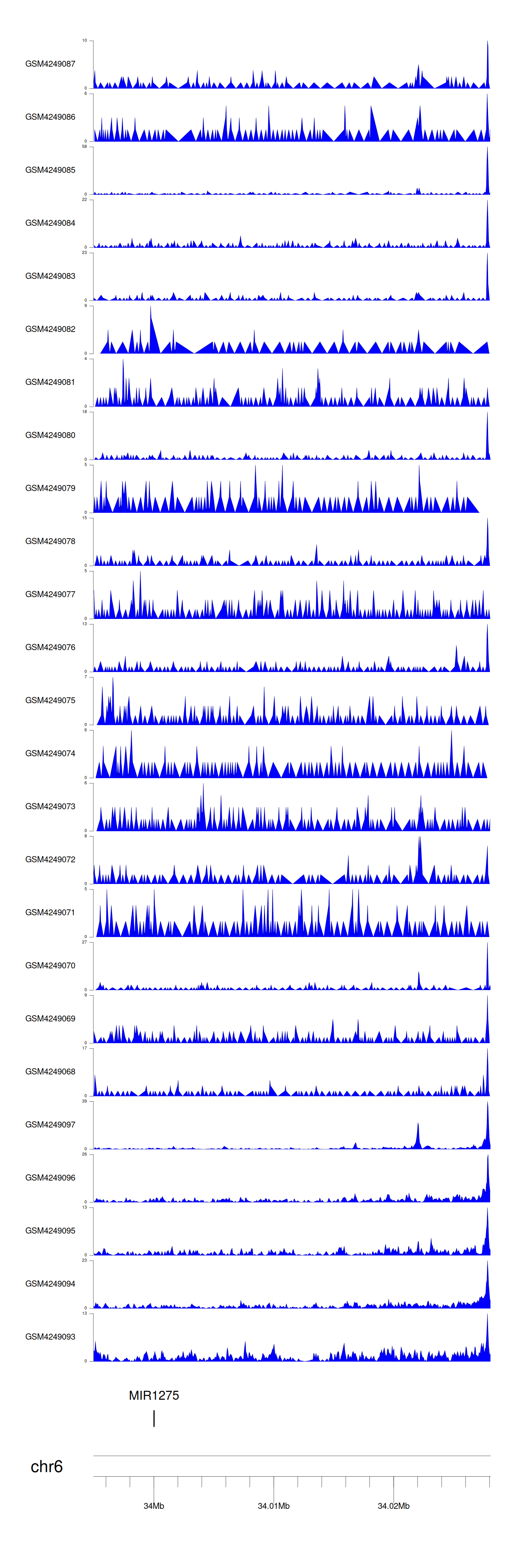 > Dataset: GSE143026 - MIR1275 peak across samples