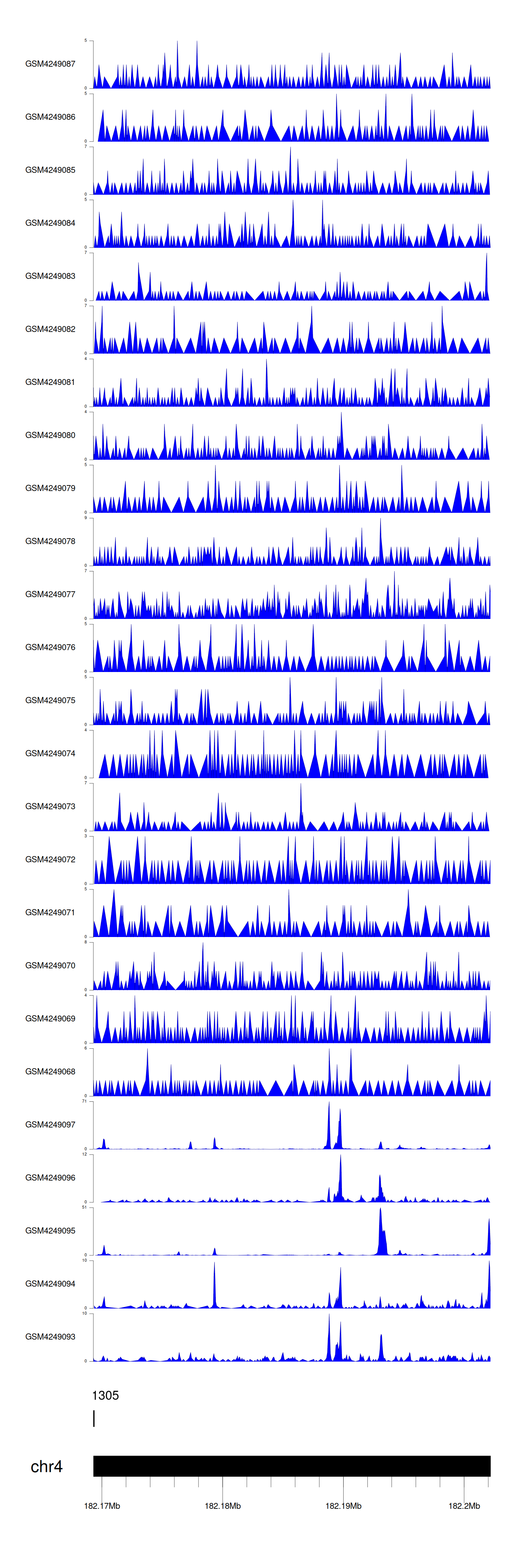 > Dataset: GSE143026 - MIR1305 peak across samples