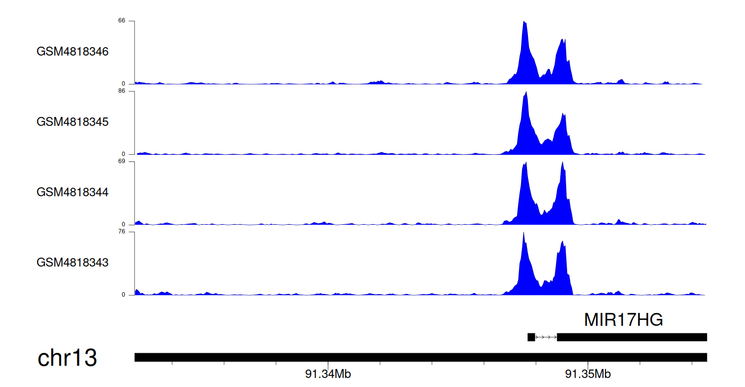 > Dataset: GSE131257 - MIR17HG peak across samples