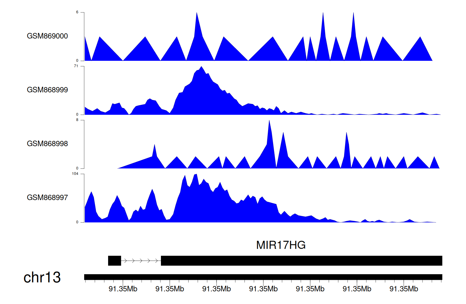> Dataset: GSE68402 - MIR17HG peak across samples