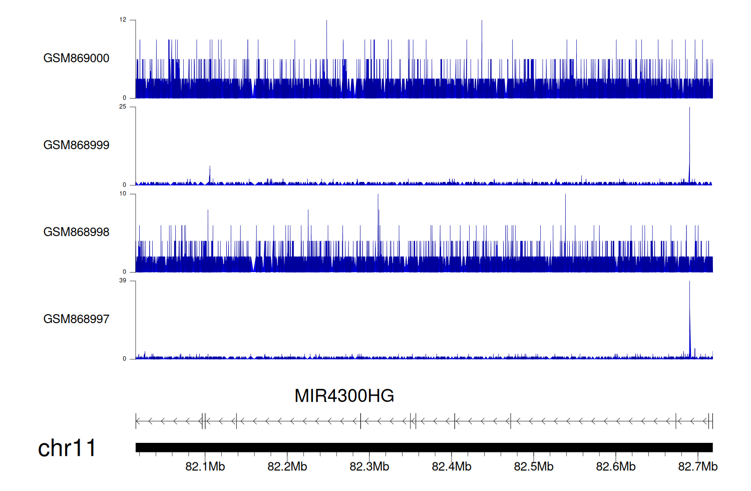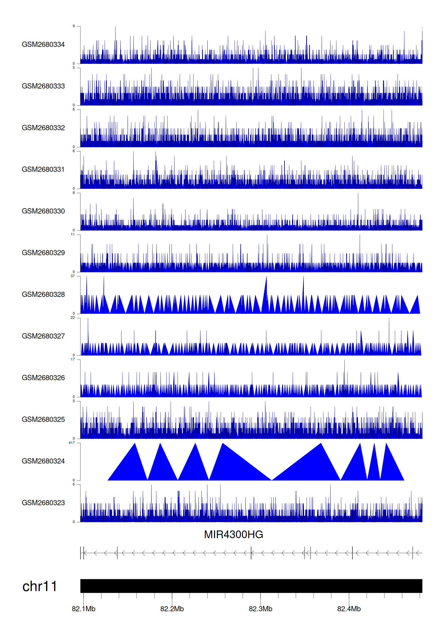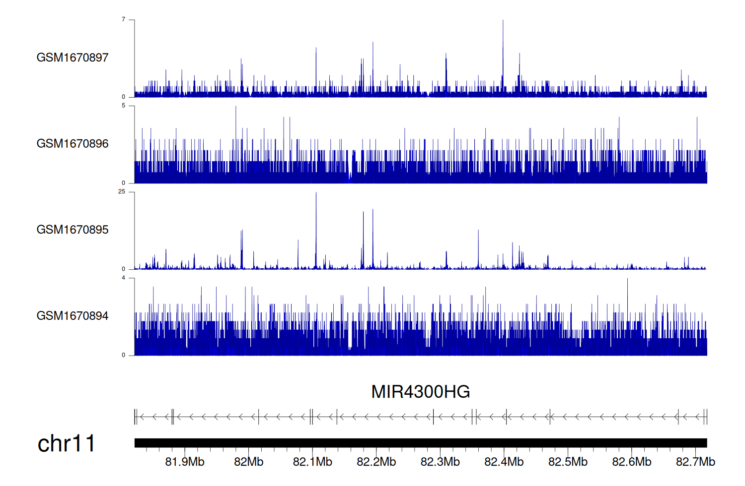 > Dataset: GSE100400 - MIR4300HG peak across samples