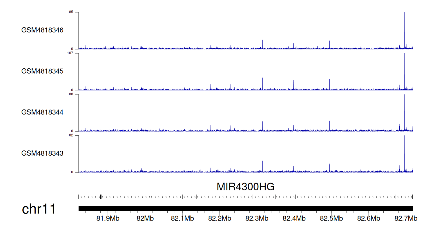> Dataset: GSE131257 - MIR4300HG peak across samples