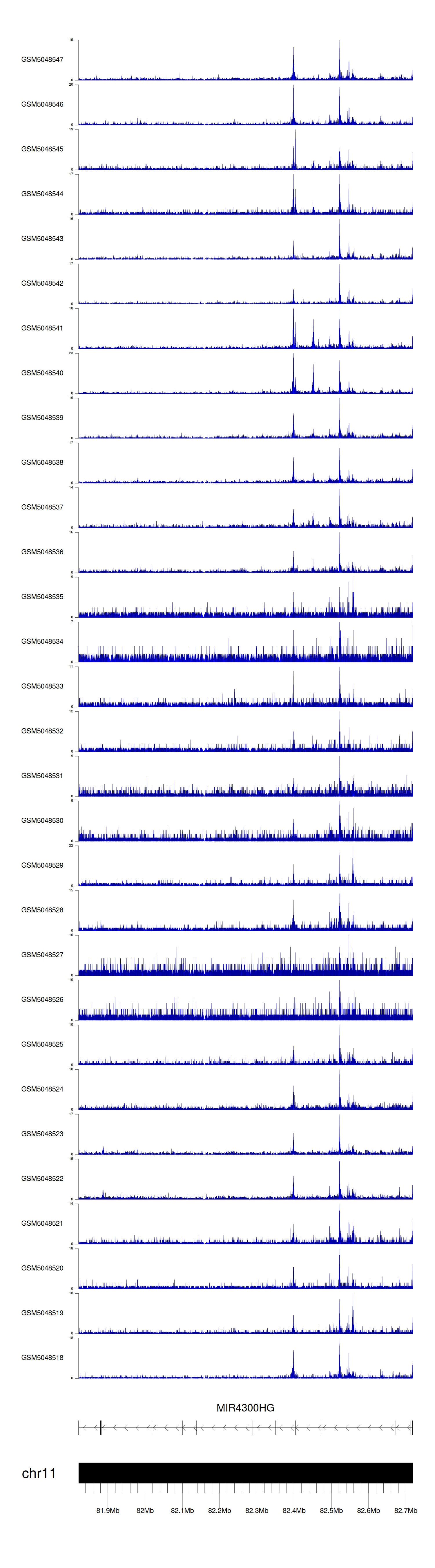 > Dataset: GSE30738 - MIR4300HG peak across samples