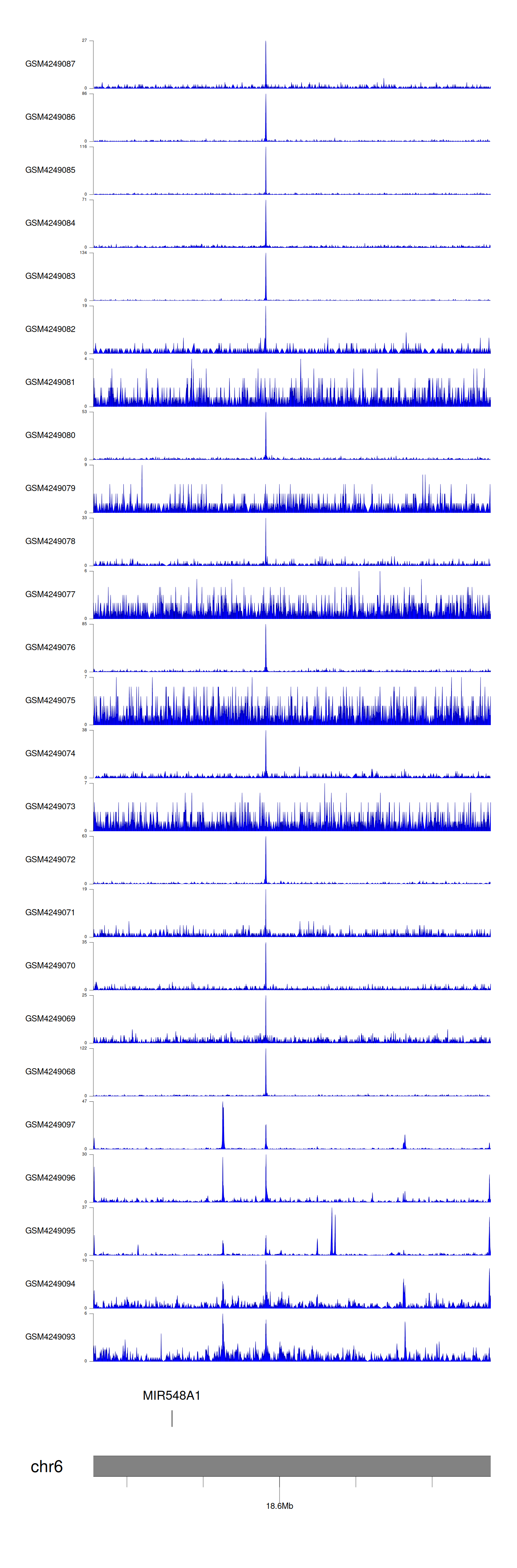 > Dataset: GSE143026 - MIR548A1 peak across samples