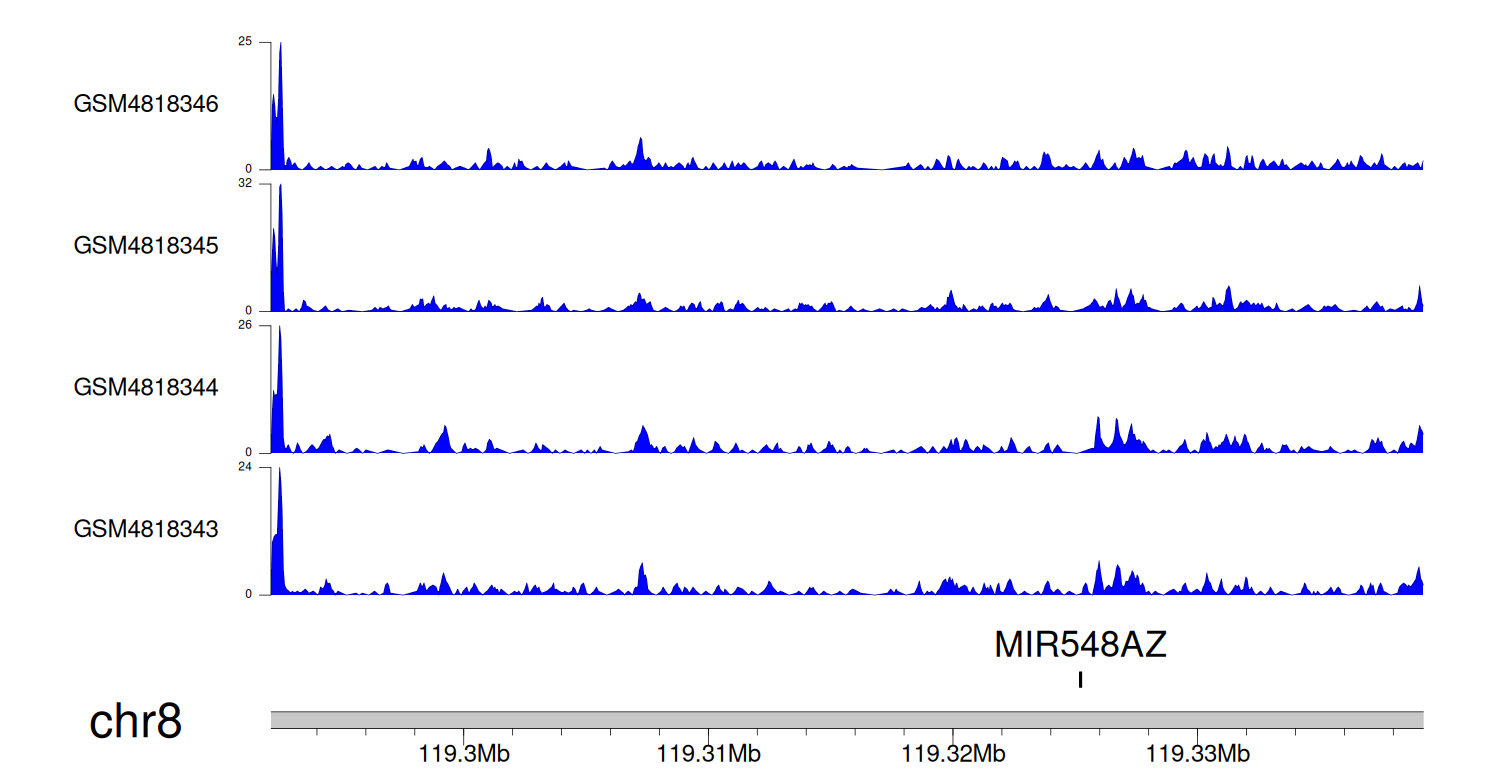 > Dataset: GSE131257 - MIR548AZ peak across samples