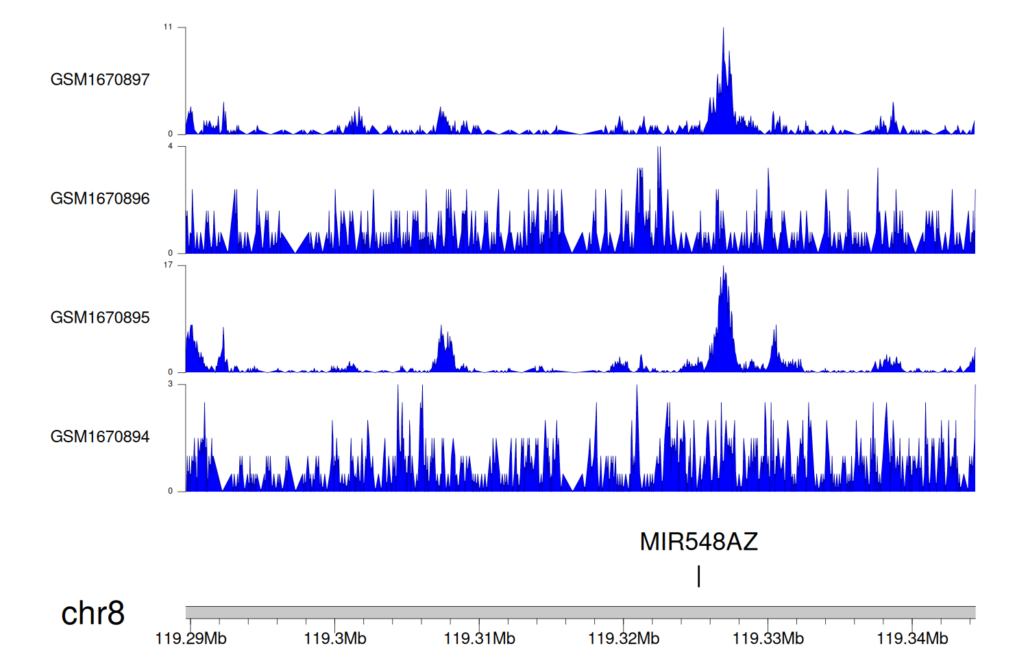 > Dataset: GSE68402 - MIR548AZ peak across samples