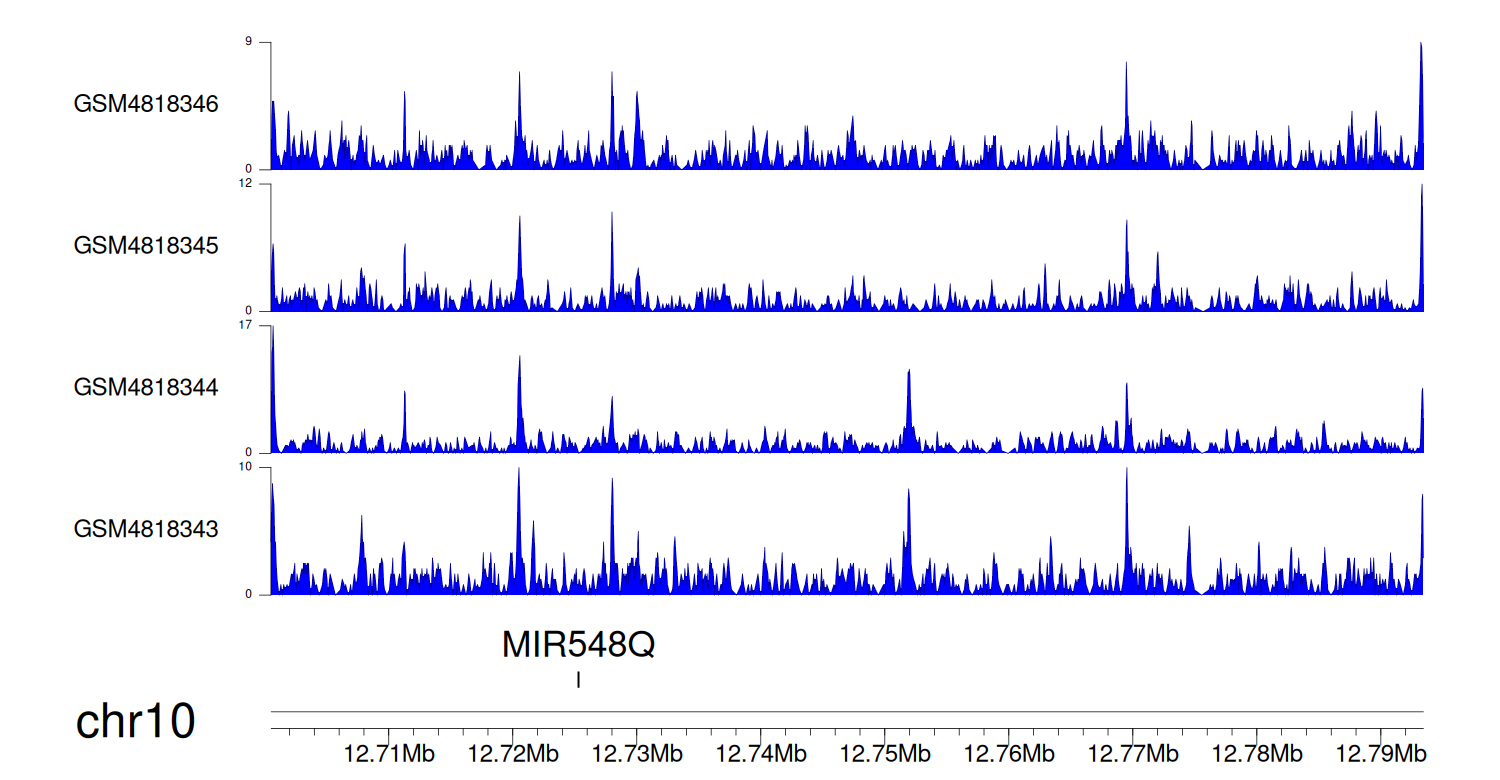 > Dataset: GSE131257 - MIR548Q peak across samples