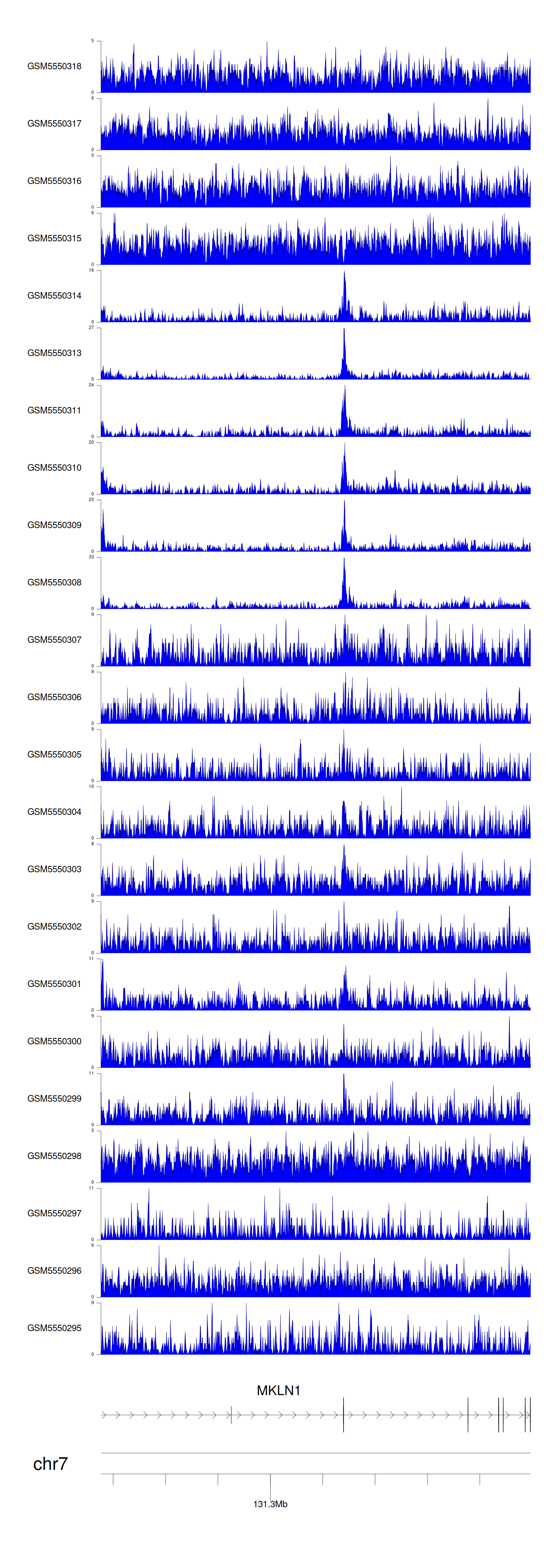 > Dataset: GSE143026 - MKLN1 peak across samples