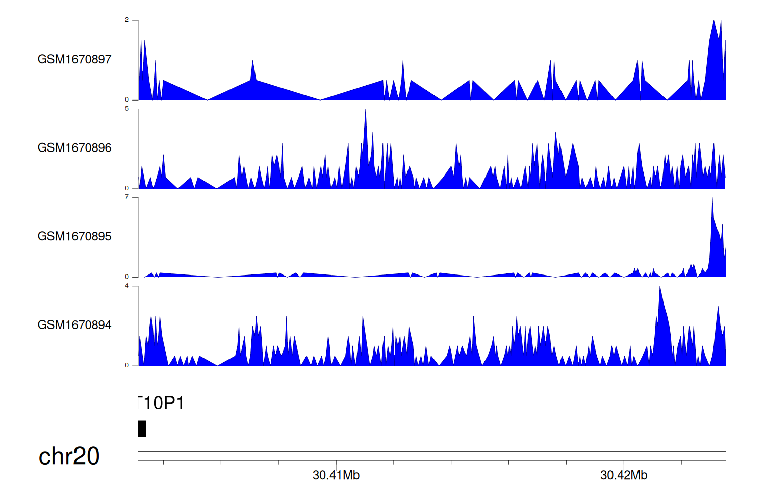 > Dataset: GSE100400 - MLLT10P1 peak across samples