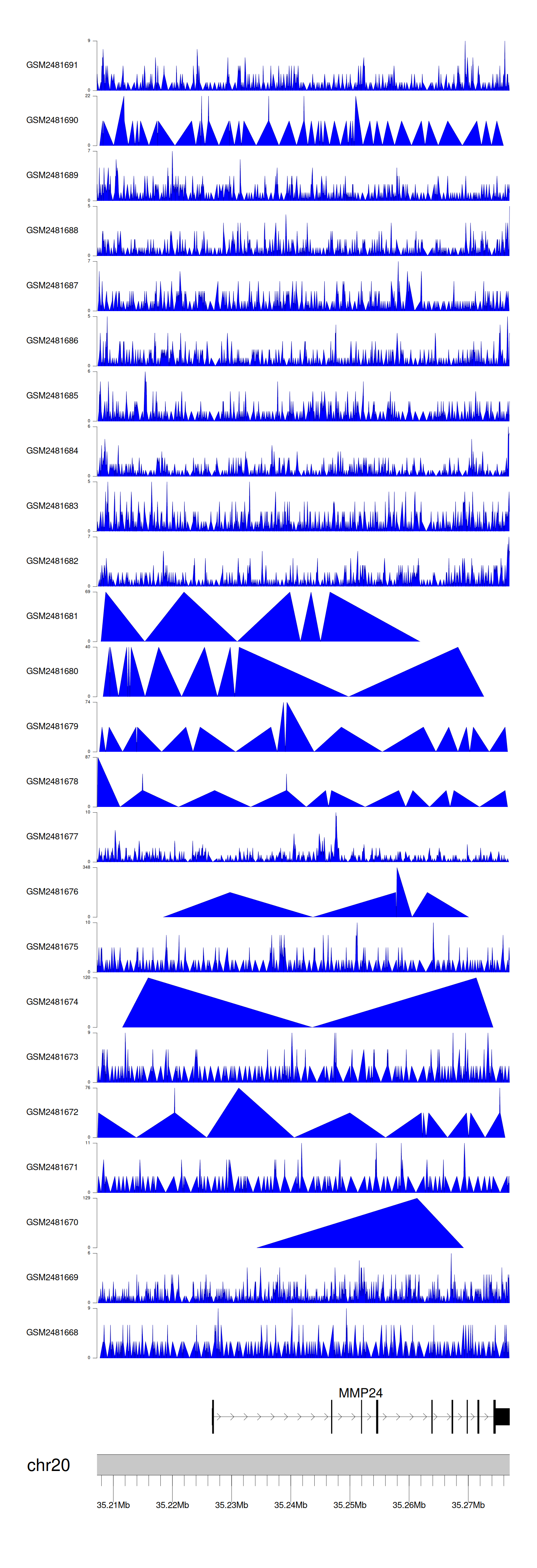 This gene encodes a member of the peptidase M10 family of matrix metalloproteinases (MMPs). Proteins in this family are involved in the breakdown of extracellular matrix in normal physiological processes, such as embryonic development, reproduction, and tissue remodeling, as well as in disease processes, such as arthritis and metastasis. The encoded preproprotein is proteolytically processed to generate the mature protease. Unlike most MMPs, which are secreted, this protease is a member of the membrane-type MMP (MT-MMP) subfamily, contains a transmembrane domain and is expressed at the cell surface. Substrates of this protease include the proteins cadherin 2 and matrix metallopeptidase 2 (also known as 72 kDa type IV collagenase). The gene has previously been referred to as MMP25 but has been renamed matrix metallopeptidase 24 (MMP24). [provided by RefSeq, Oct 2019] |