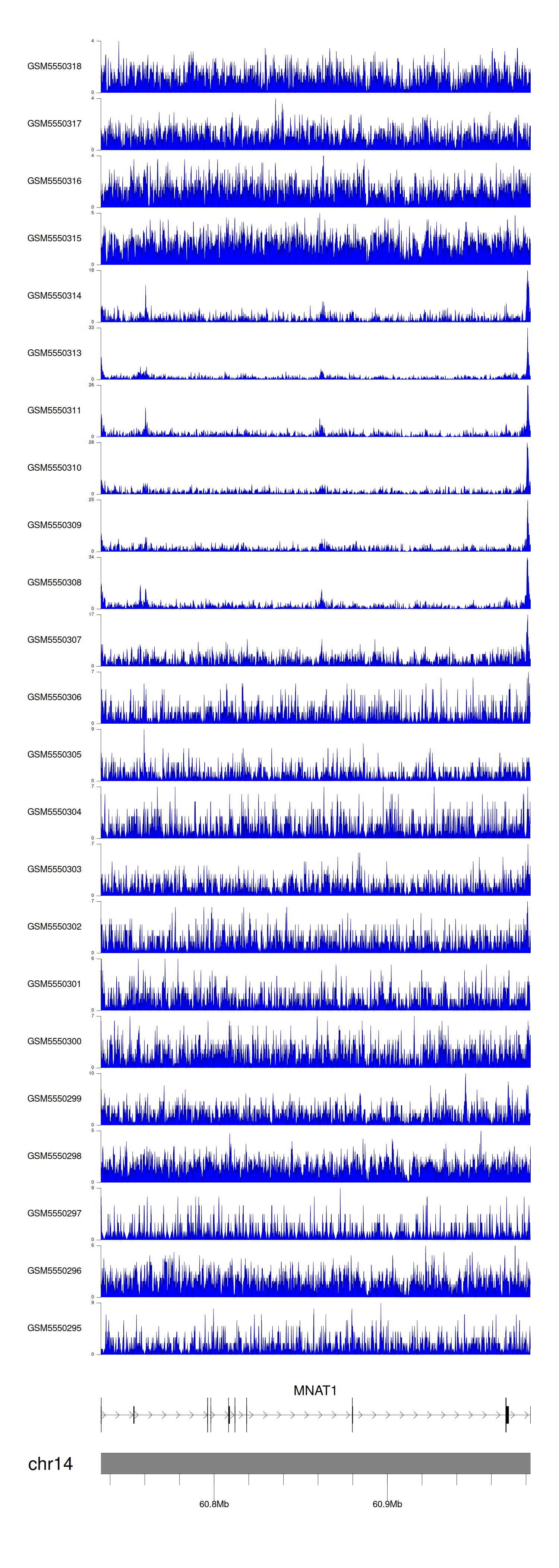 > Dataset: GSE143026 - MNAT1 peak across samples