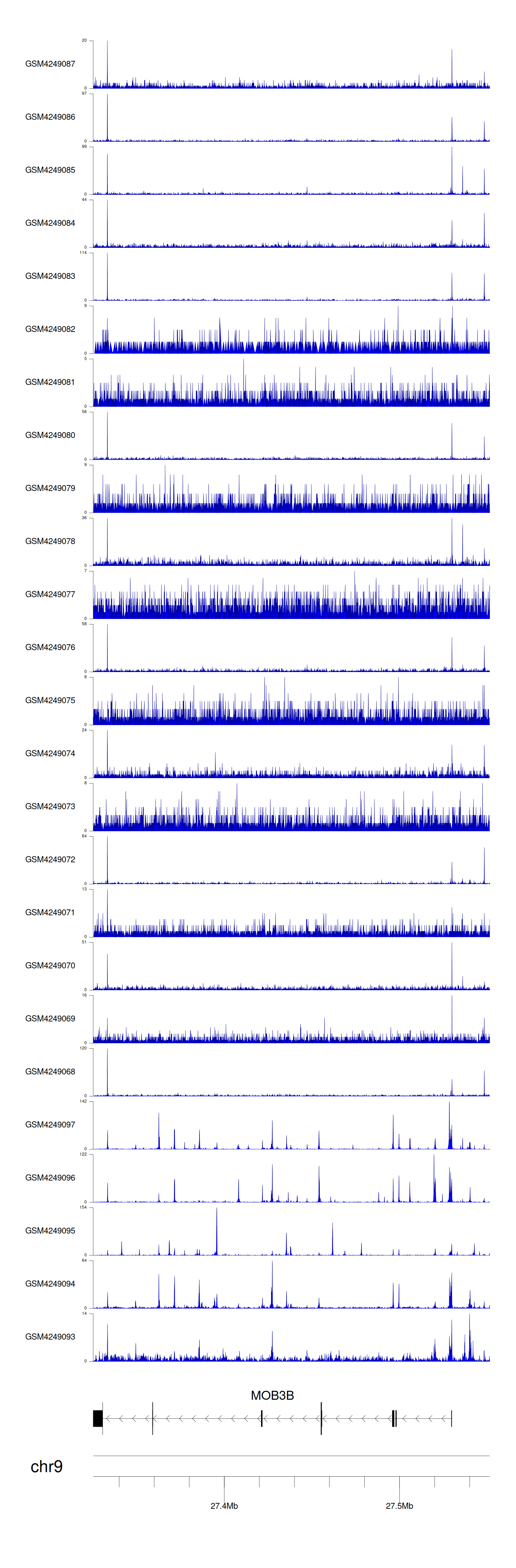 > Dataset: GSE143026 - MOB3B peak across samples