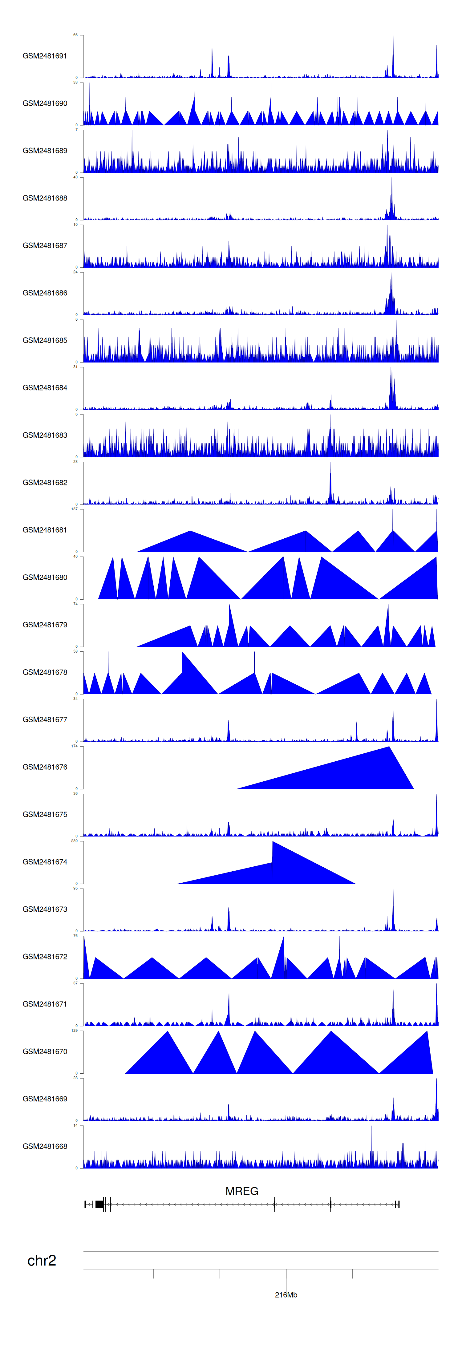 > Dataset: GSE94732 - MREG peak across samples