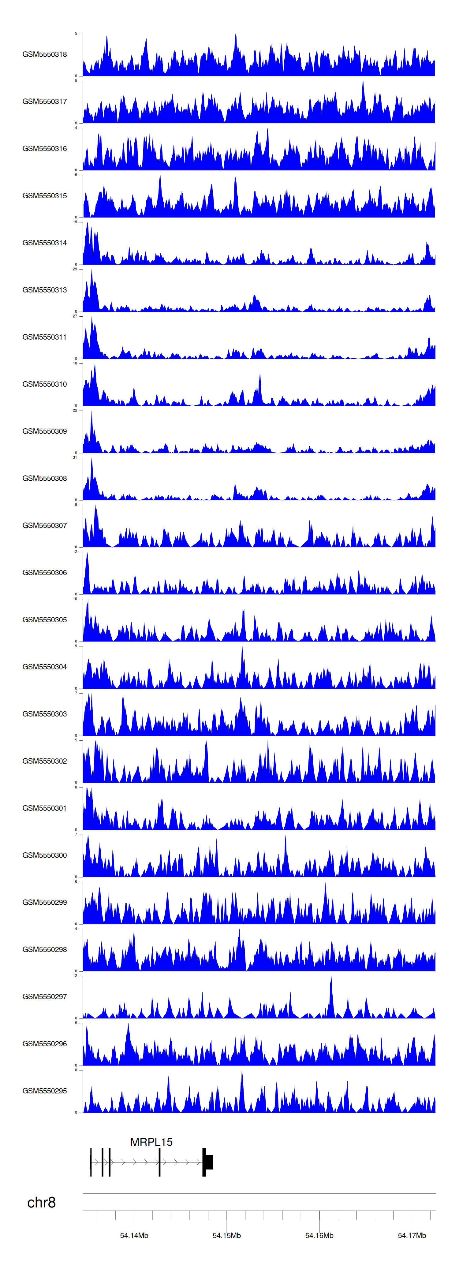 > Dataset: GSE143026 - MRPL15 peak across samples