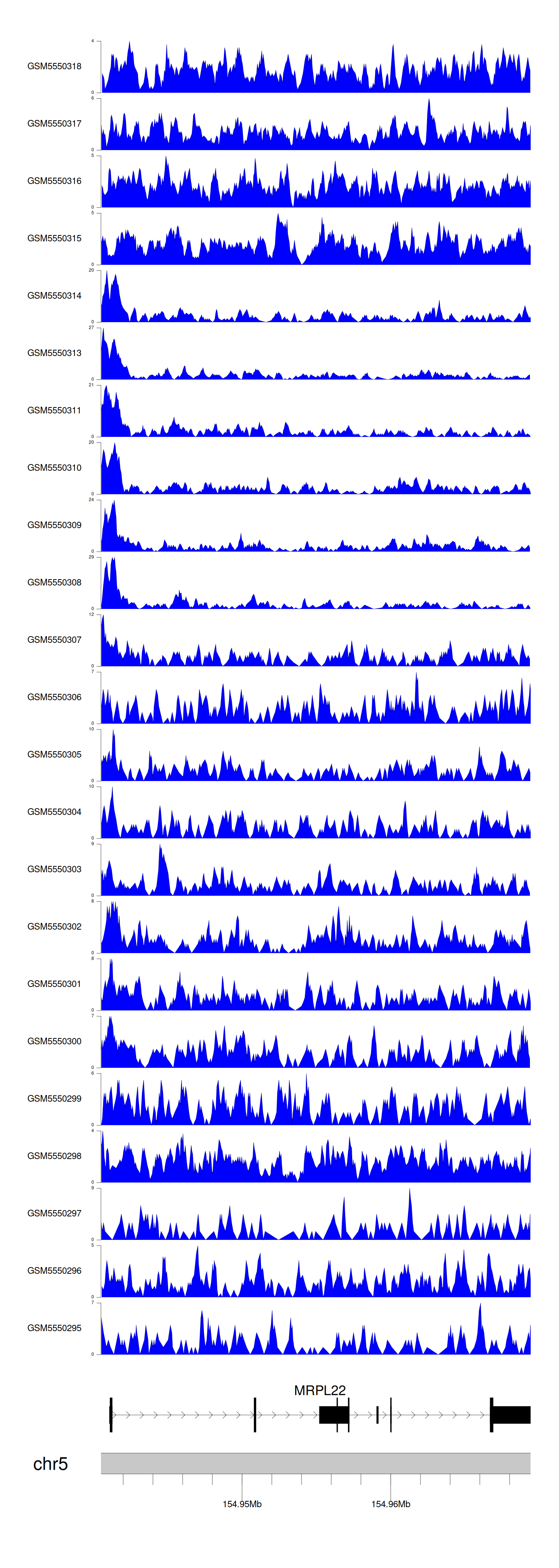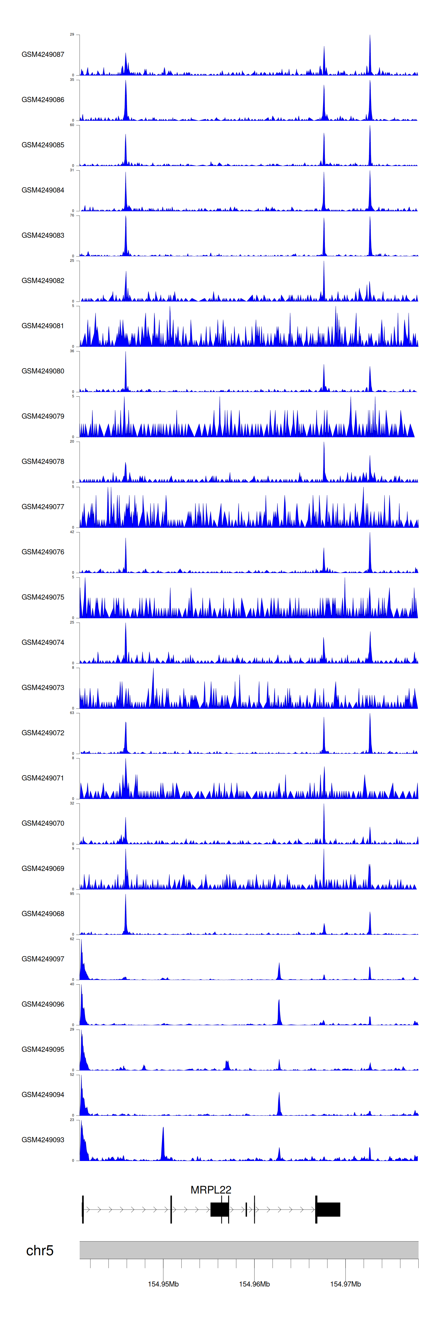 > Dataset: GSE143026 - MRPL22 peak across samples