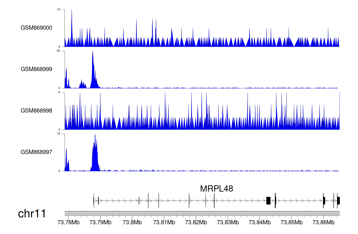 > Dataset: GSE35465 - MRPL48 peak across samples