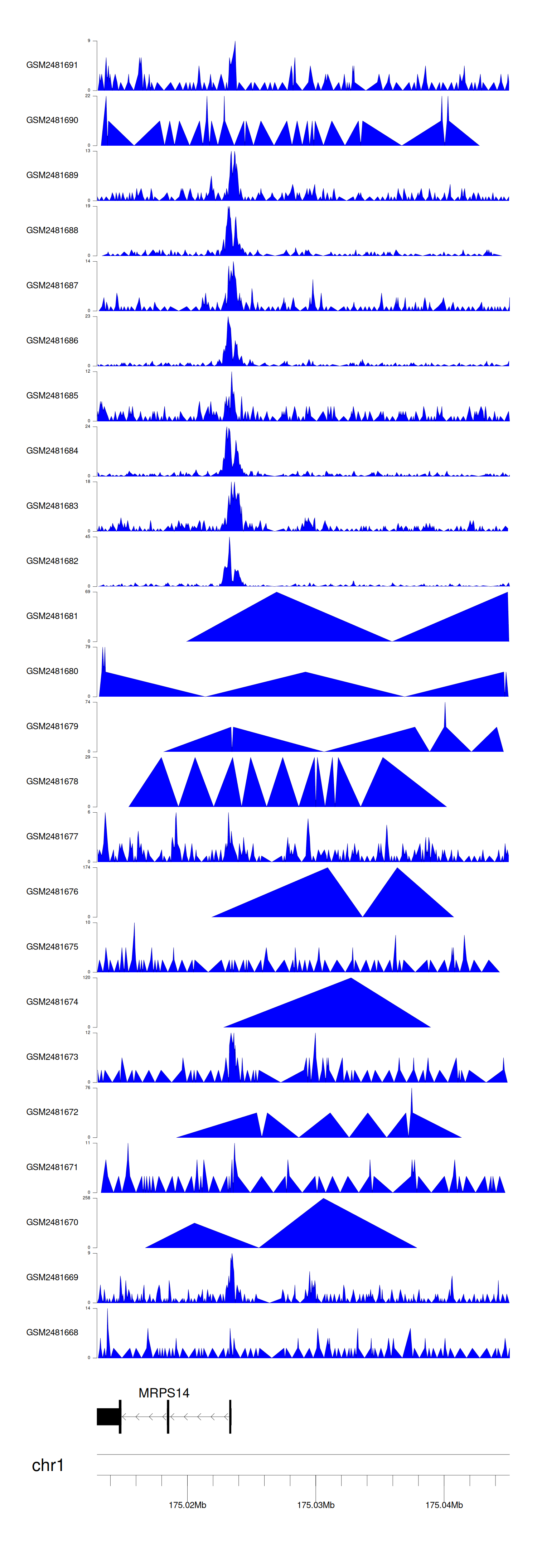 > Dataset: GSE94732 - MRPS14 peak across samples
