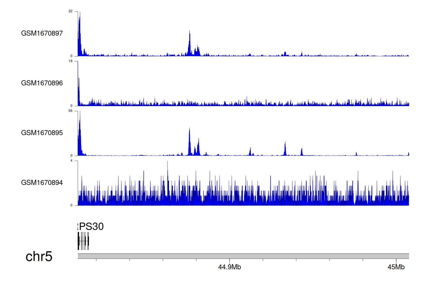 > Dataset: GSE68402 - MRPS30 peak across samples