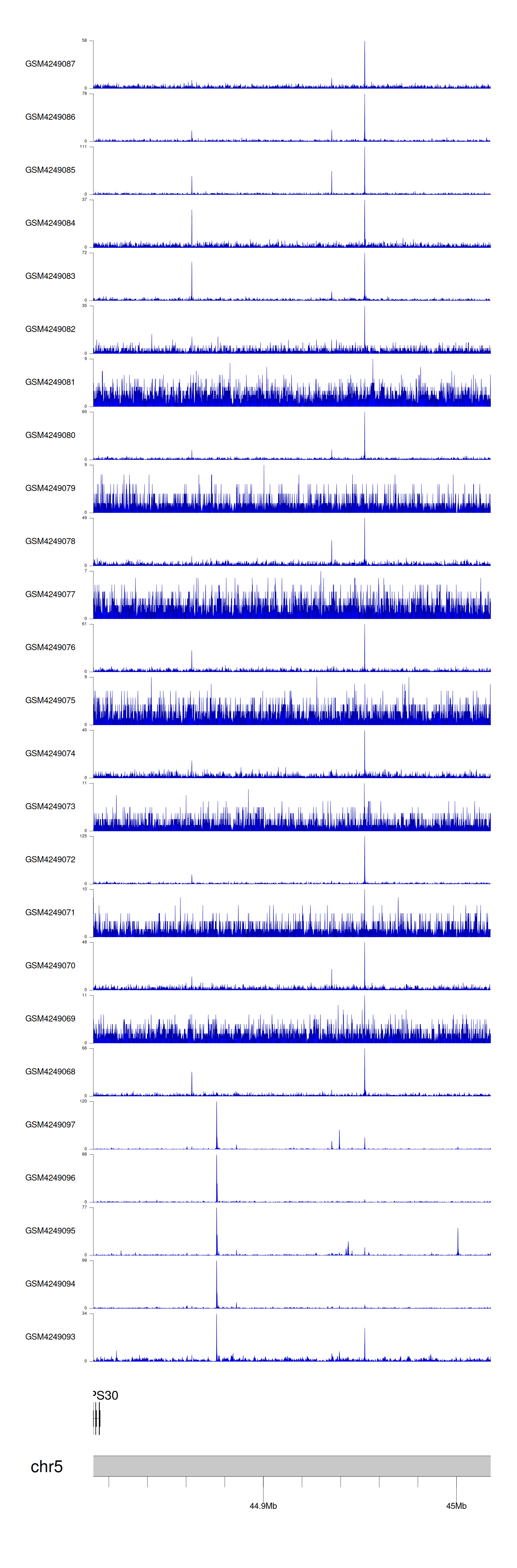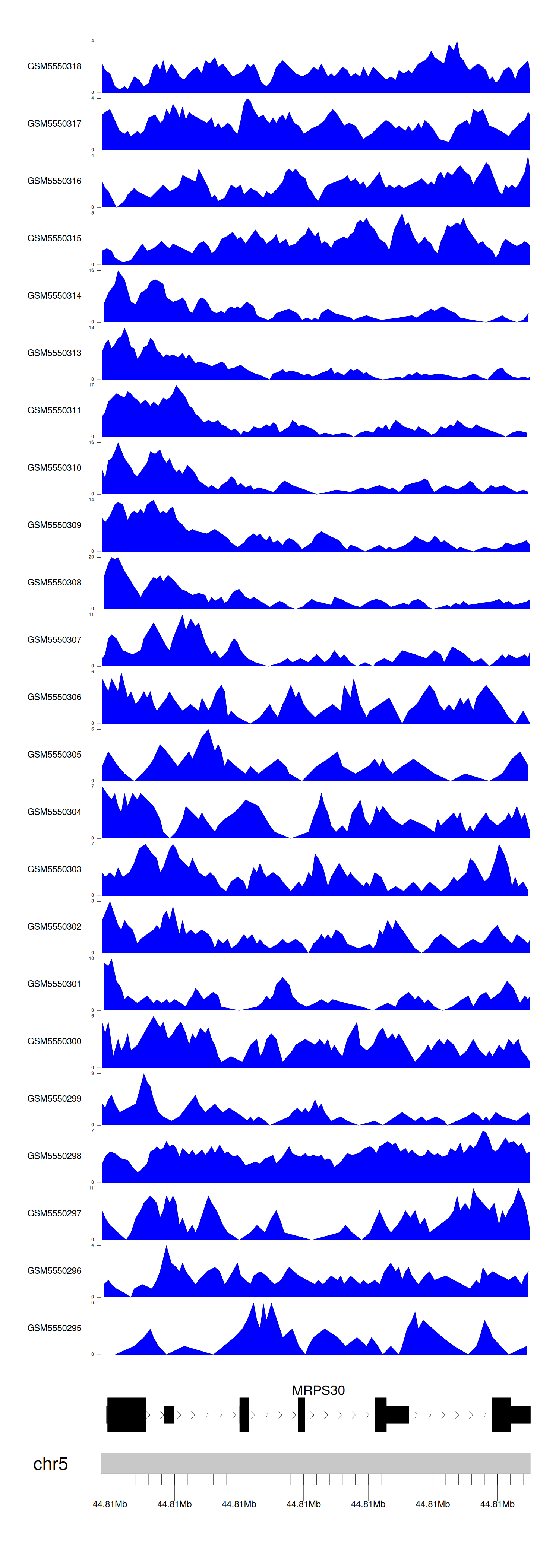 > Dataset: GSE143026 - MRPS30 peak across samples