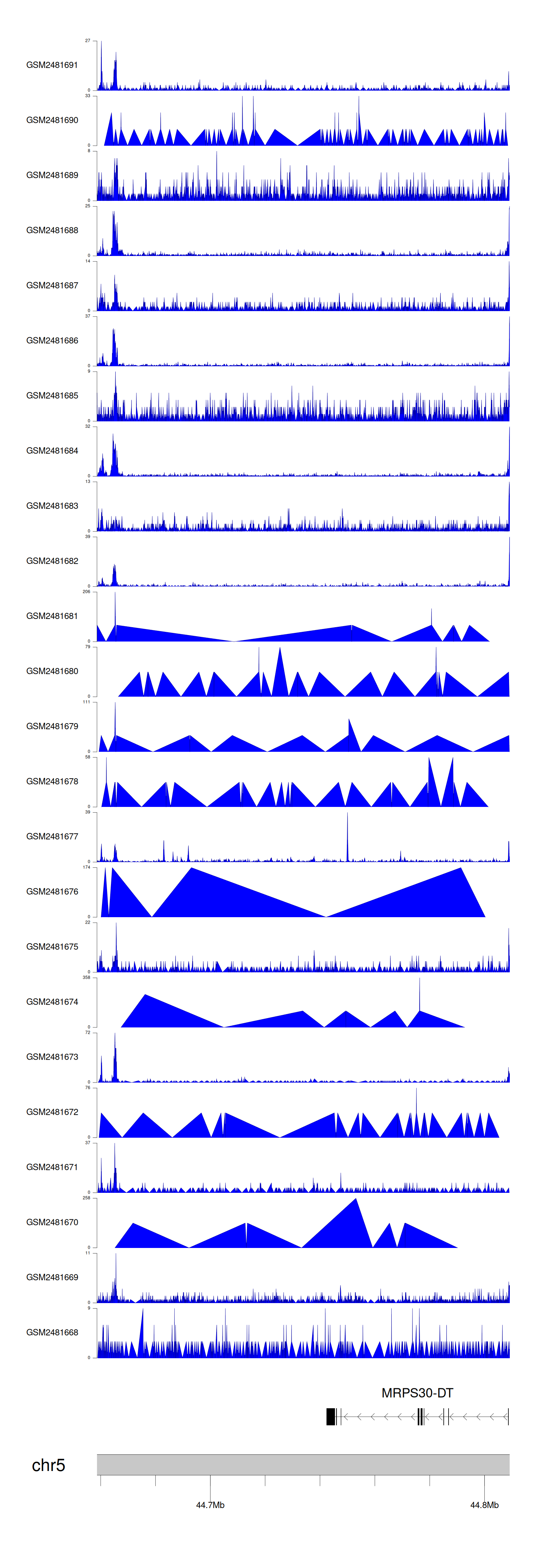 > Dataset: GSE94732 - MRPS30-DT peak across samples