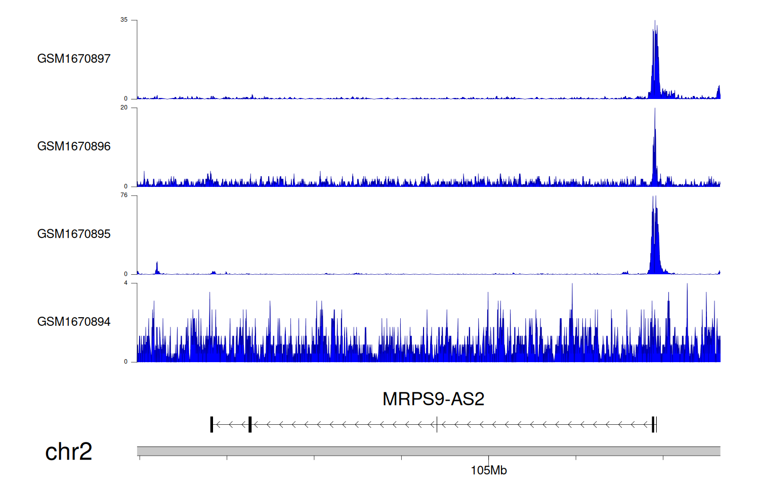 > Dataset: GSE68402 - MRPS9-AS2 peak across samples