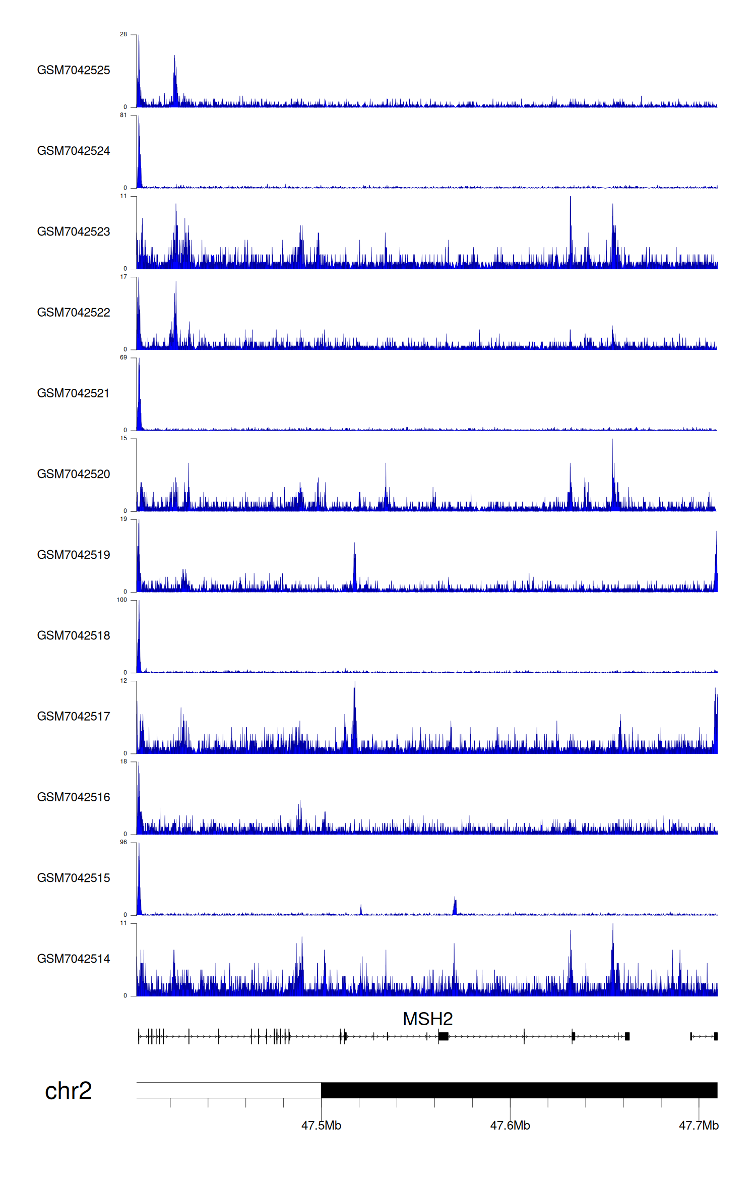 > Dataset: GSE225248 - MSH2 peak across samples