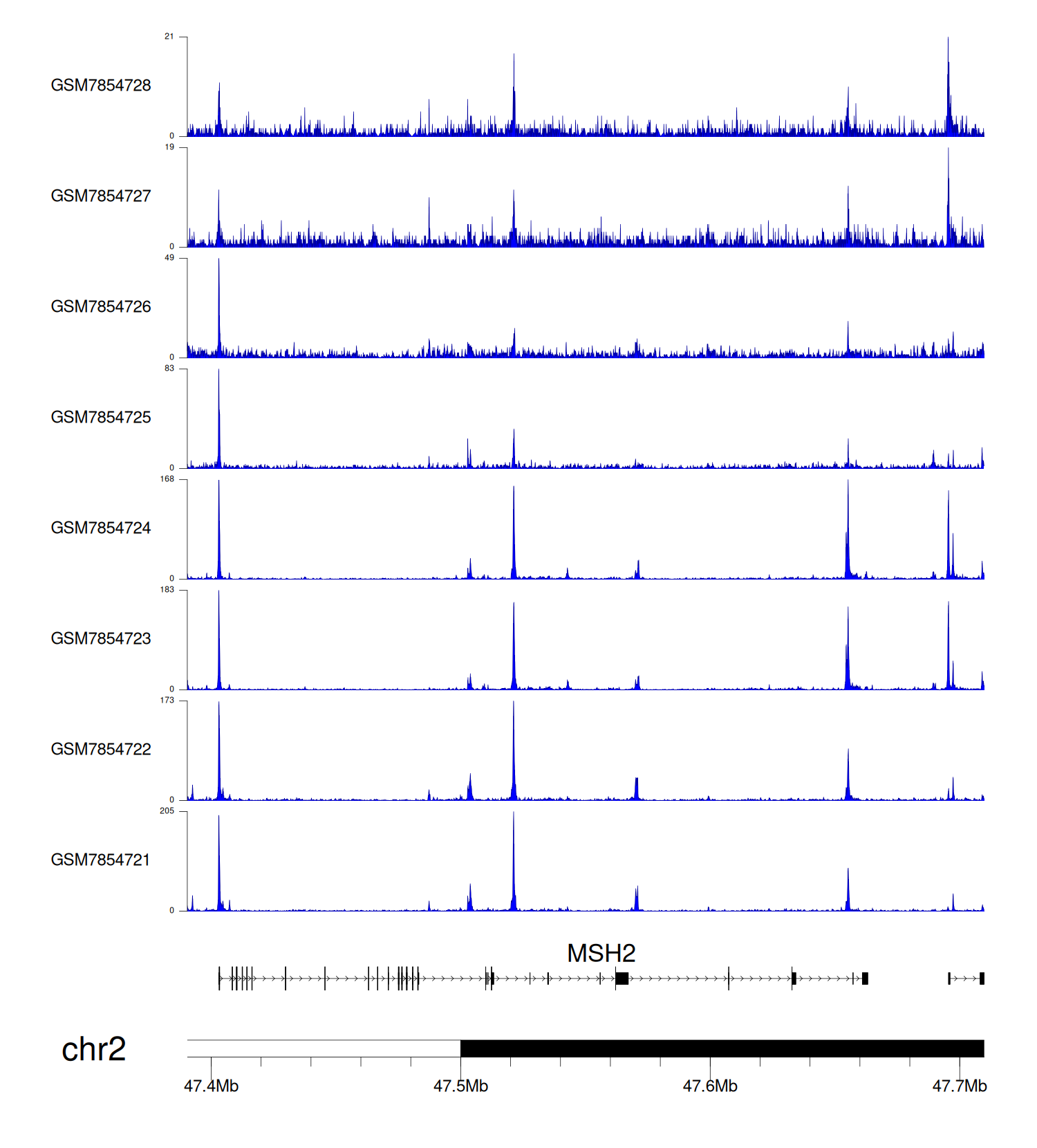 > Dataset: GSE198334 - MSH2 peak across samples