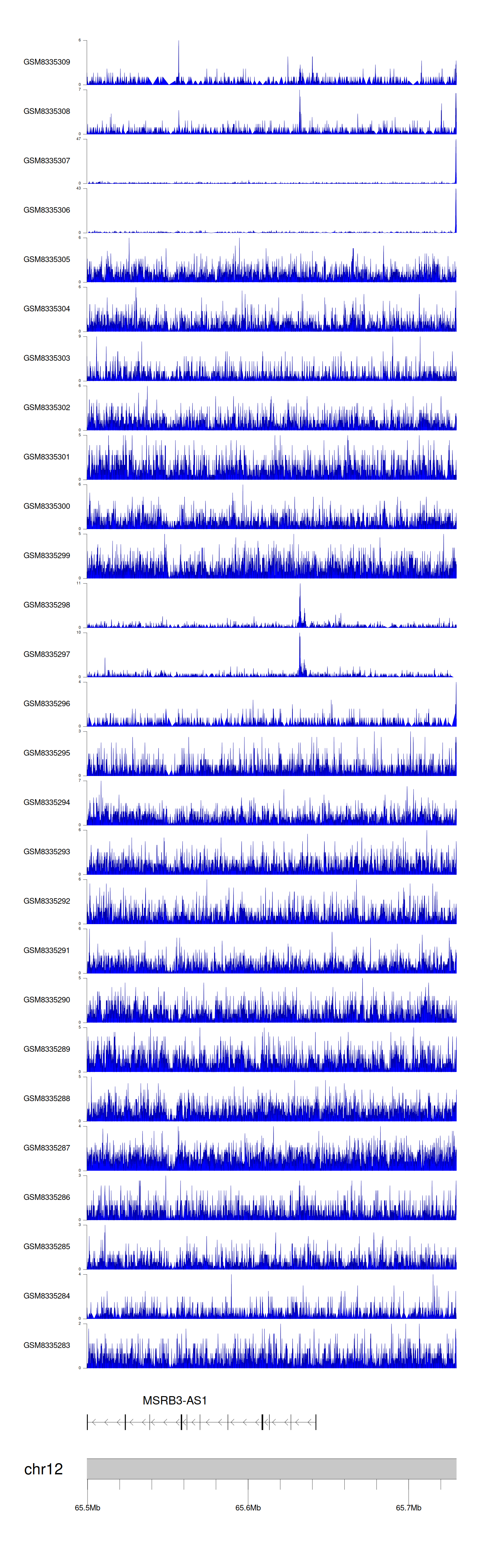 > Dataset: GSE270130 - MSRB3-AS1 peak across samples
